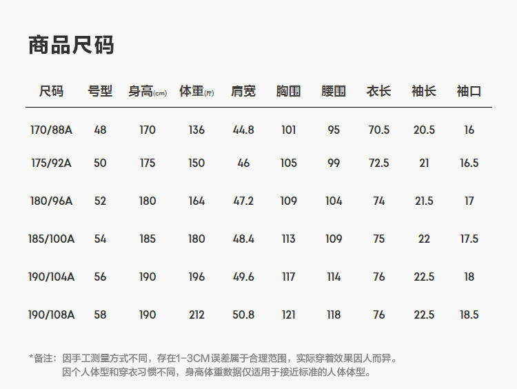 | 尺码 | 衣长(cm) | 肩宽(cm) | 腰围(cm) | 袖长(cm) | 胸围(cm) | 下摆围(cm) | 号型 |