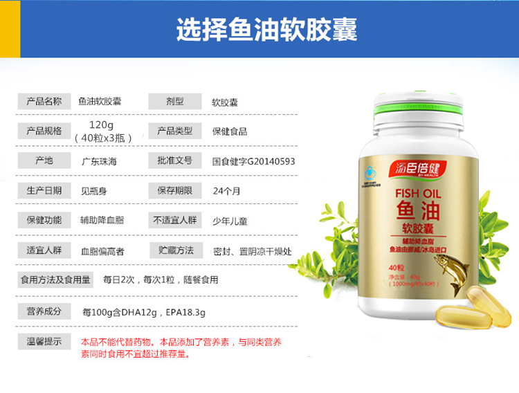 商品名称:鱼油软胶囊40粒X3瓶礼盒 深海鱼肝油辅助降血脂