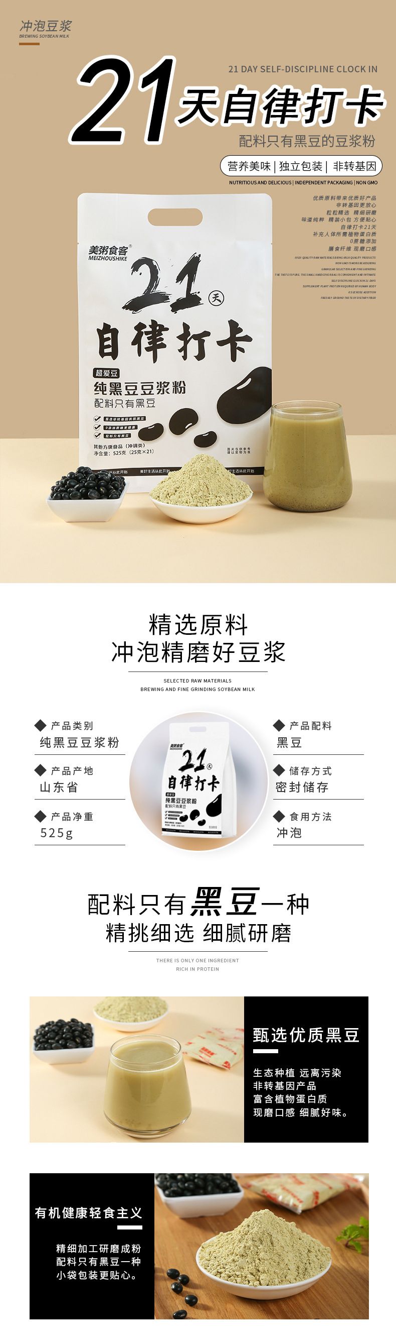 商品名称:美粥食客 纯黑豆豆浆粉525g营养早餐 内含独立21小包