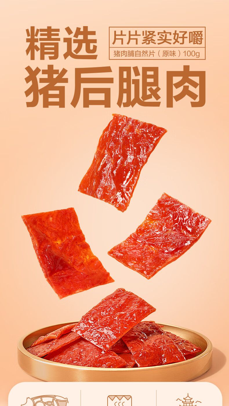 良品铺子 猪肉脯自然片100g*8袋靖江风味猪肉干肉脯肉类零食休闲网红小吃