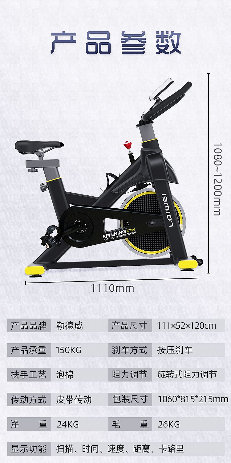 商品名称:勒德威 K750动感单车1060×805×225mm