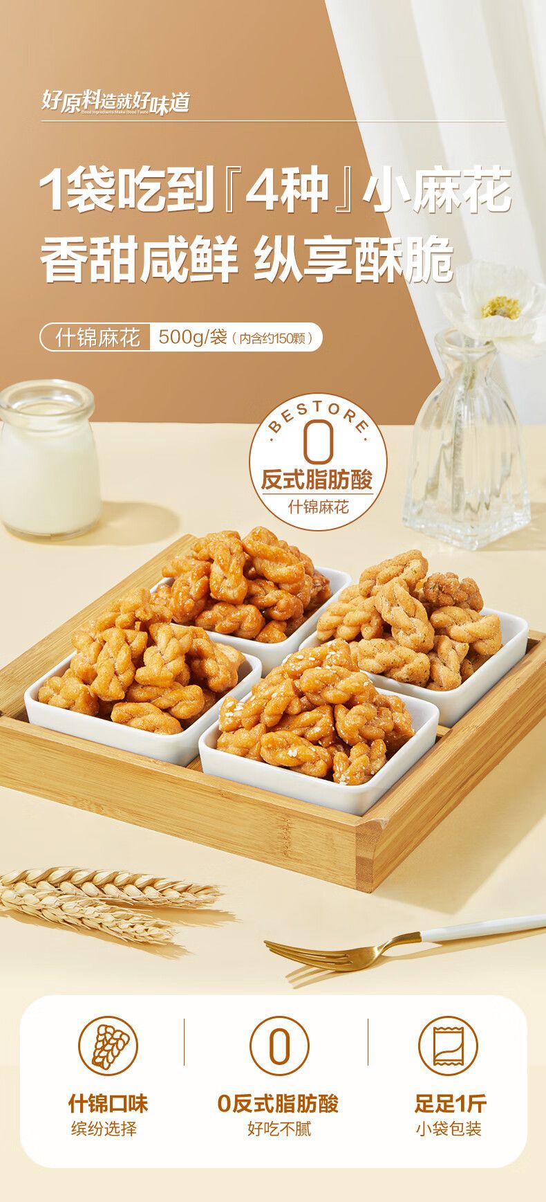 商品名称:良品铺子什锦麻花500gx5袋办公室早餐休闲零食品独立包装糕点点心下午茶代餐