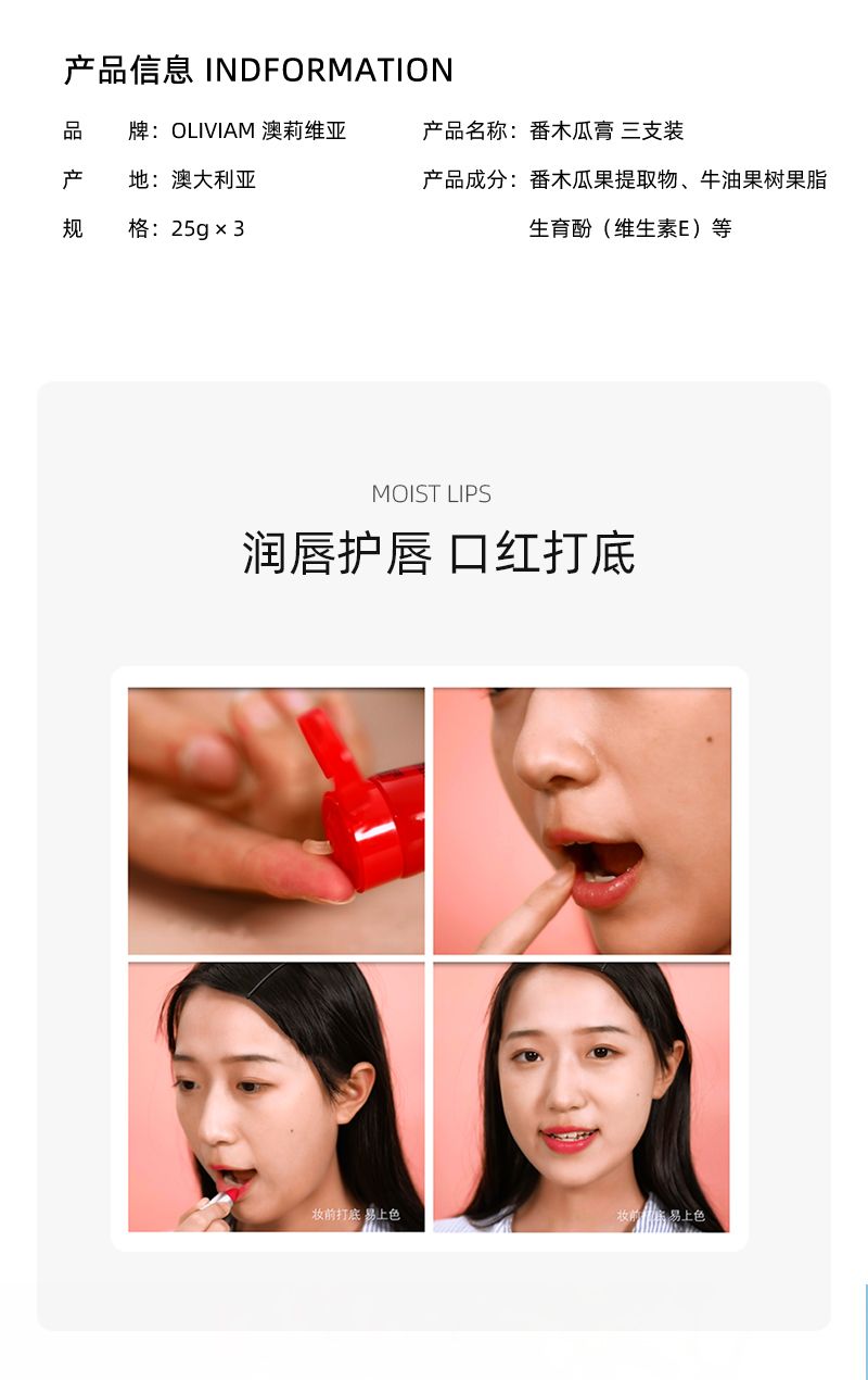 商品名称:Oliviam/澳莉维亚木瓜膏3件套礼盒