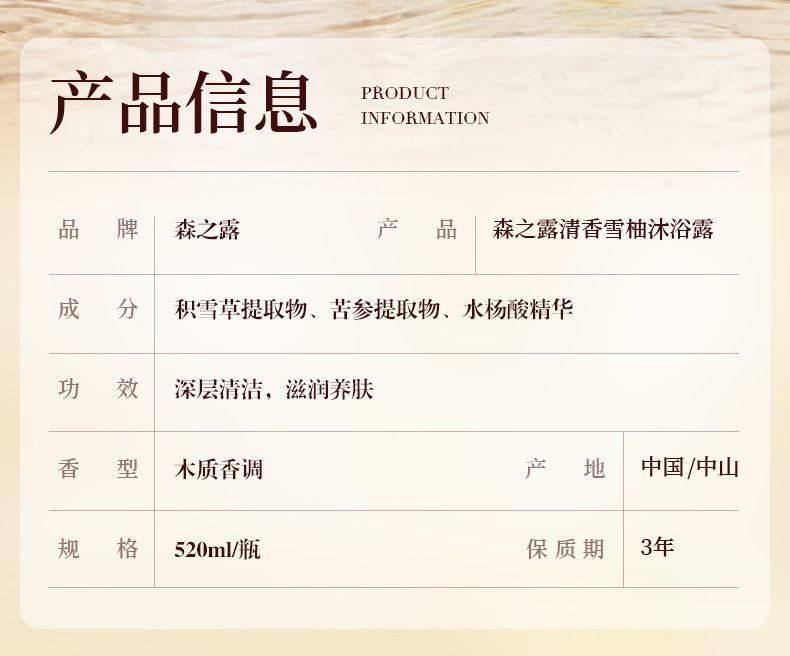 商品名称:森之露清香雪柚沐浴露(彩盒)520ml