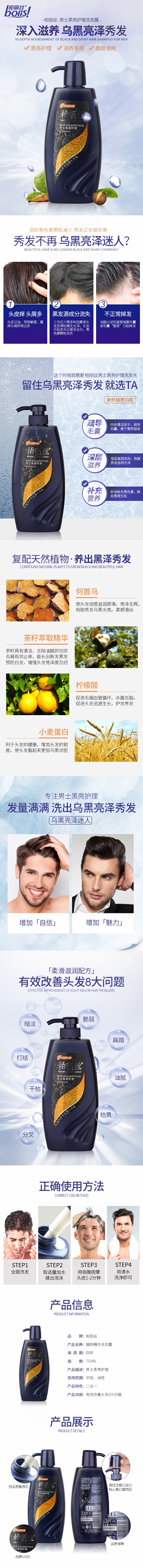 商品名称:柏丽丝 男士黑亮护理洗发露750ml/瓶