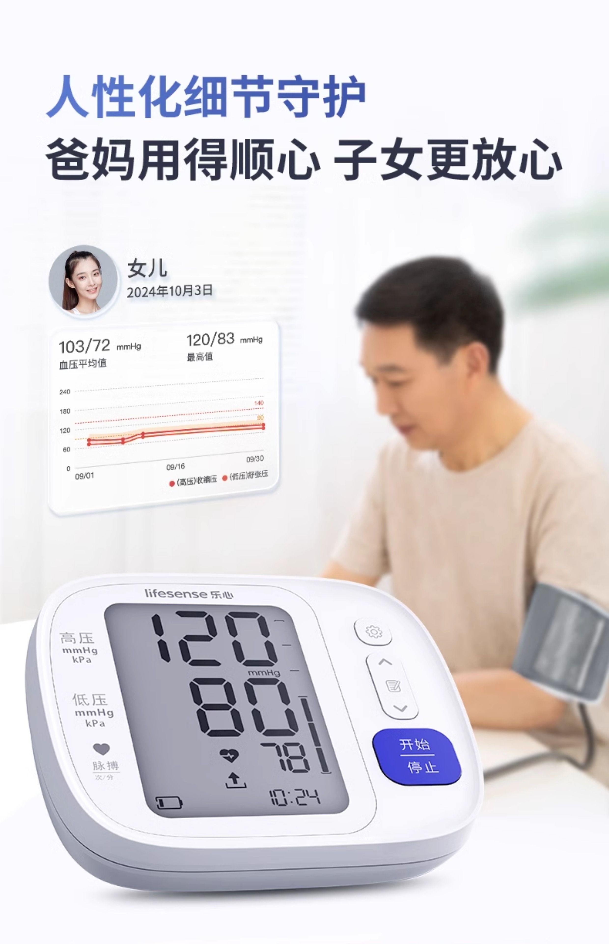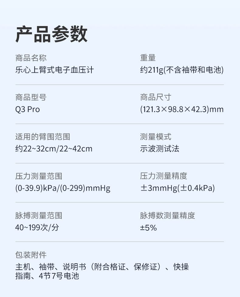 商品名称:乐心电子血压计Q3pro 家用高精准医用血压测量仪老人臂式