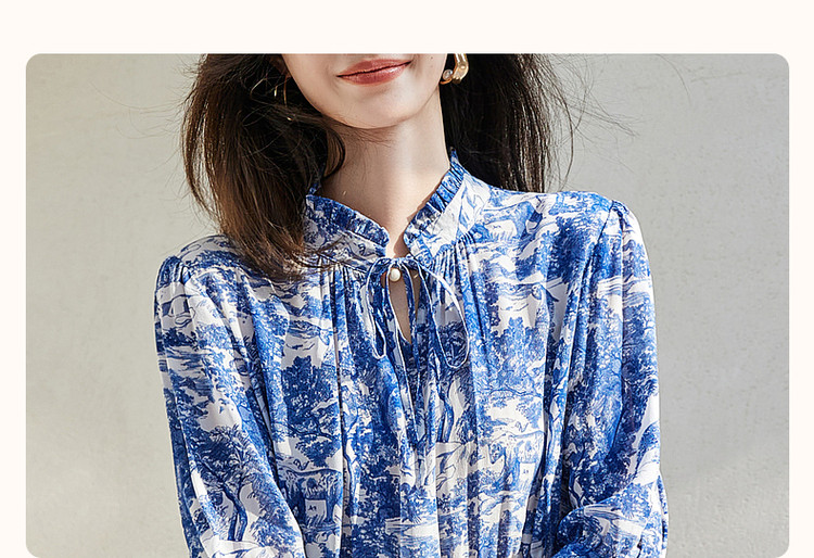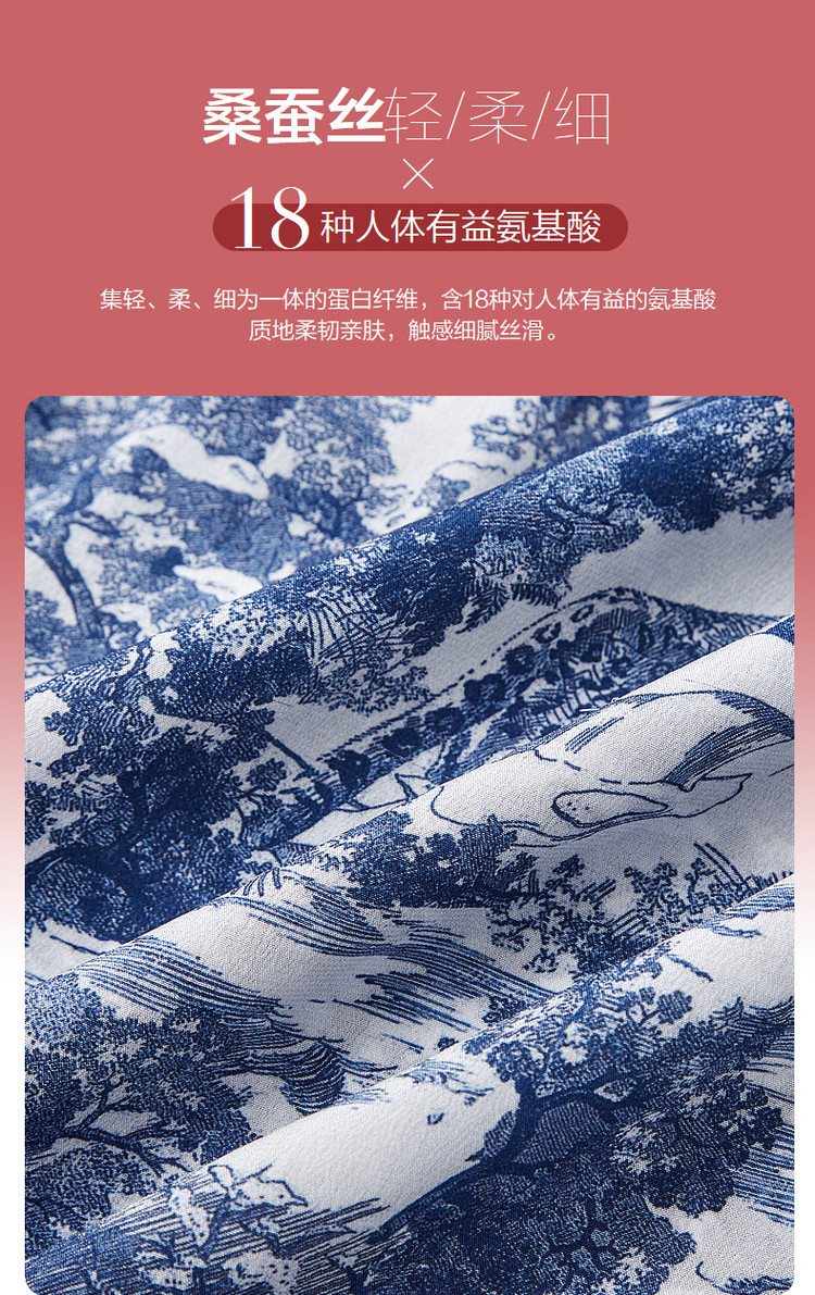 【度假印花裙】夏木耳领桑蚕丝七分袖连衣裙女中长款 025793
