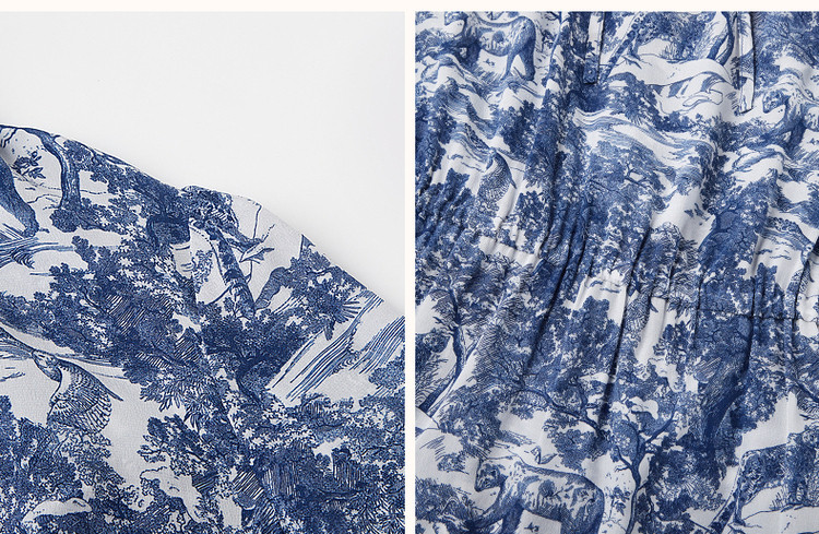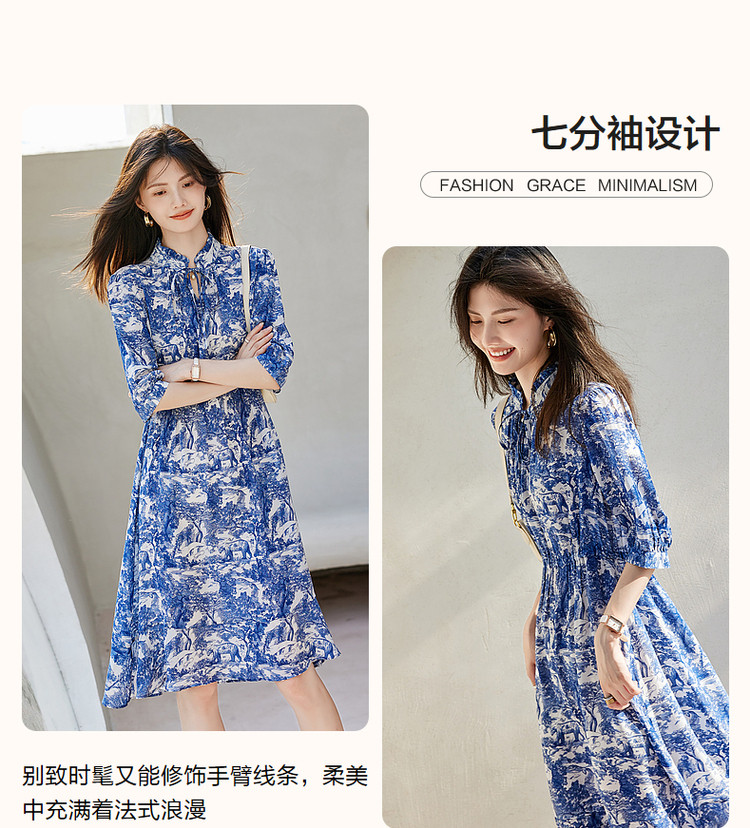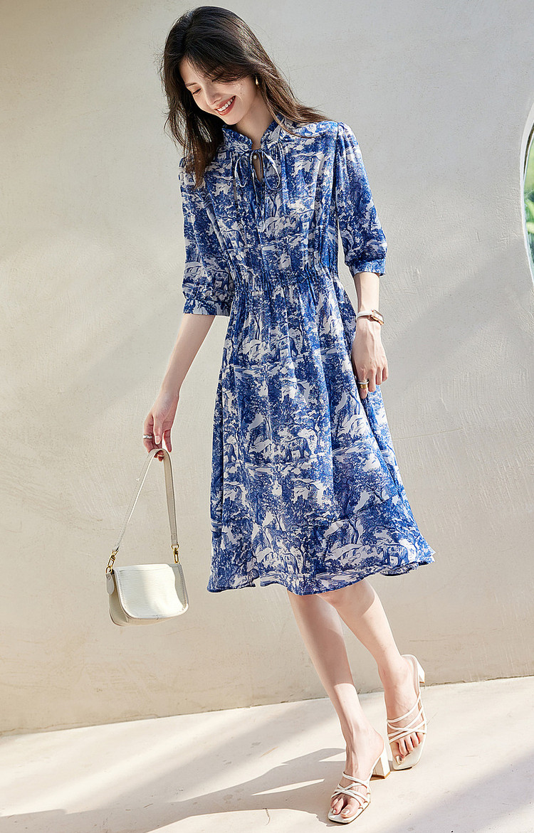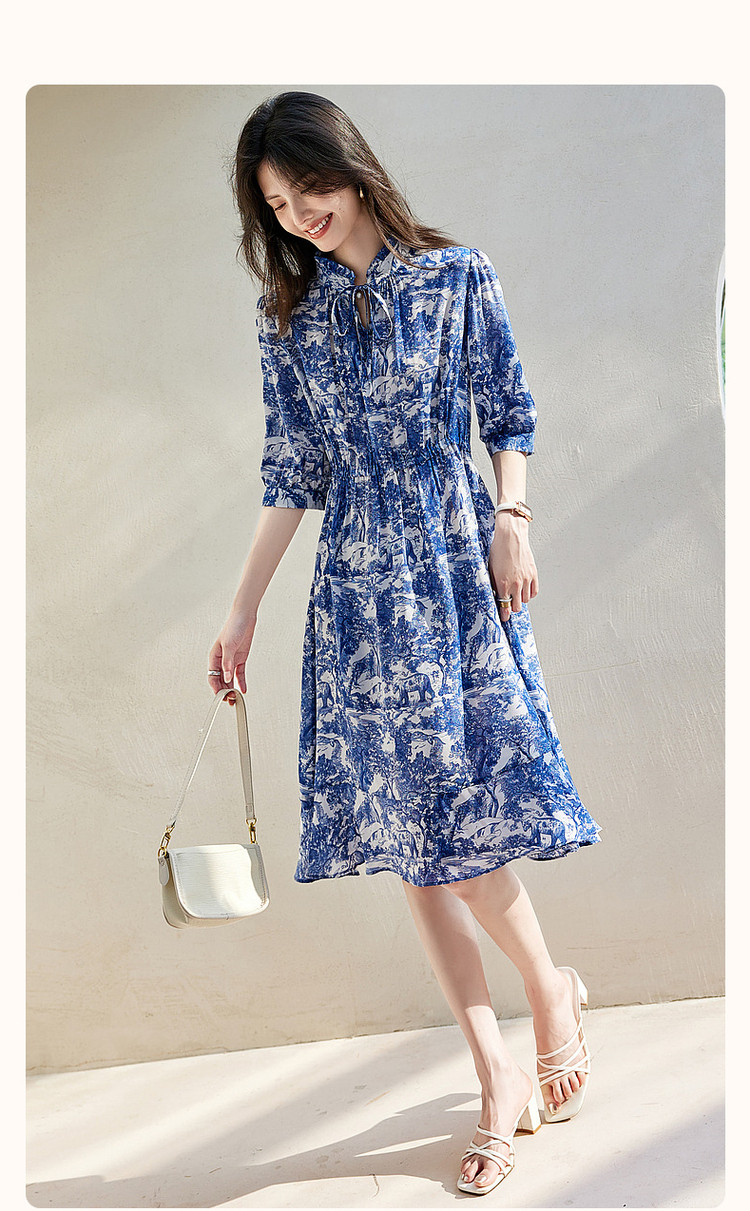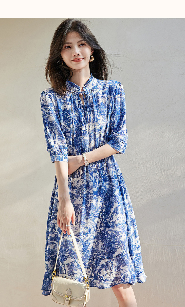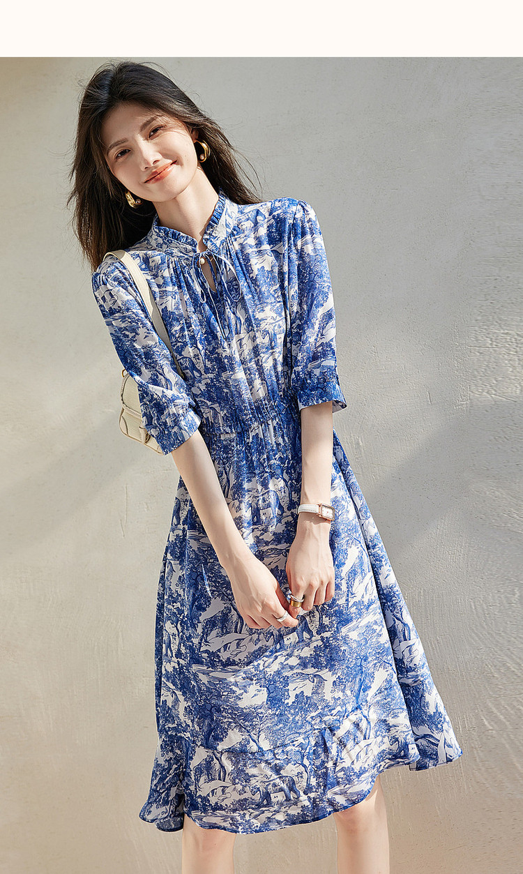 商品名称:【度假印花裙】夏木耳领桑蚕丝七分袖连衣裙女中长款 025793