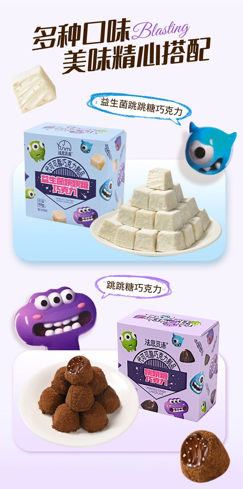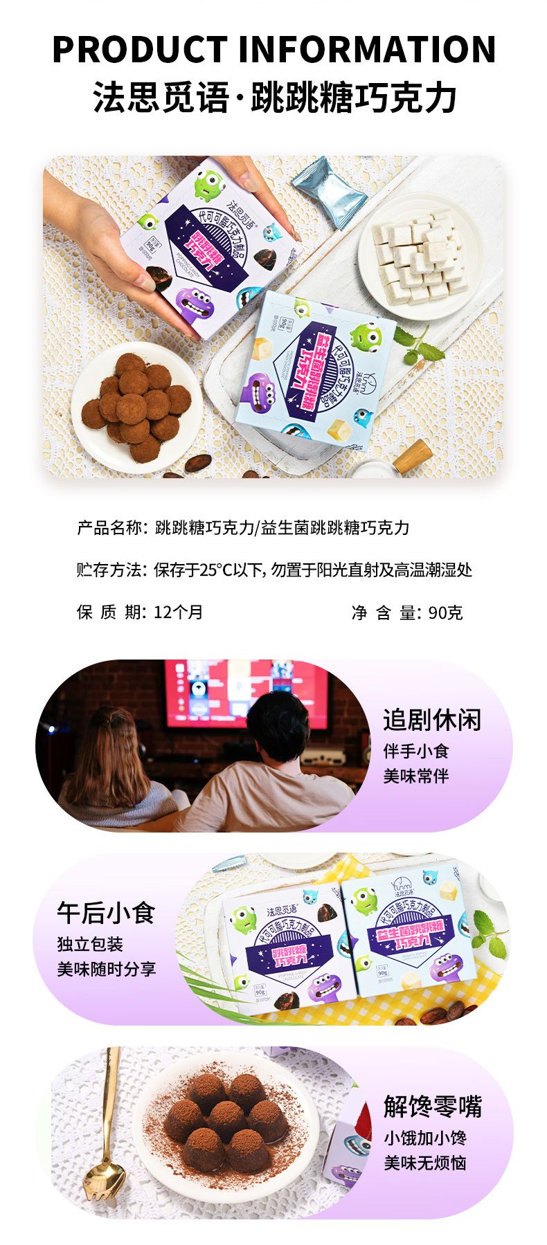 商品名称:法思觅语 益生菌跳跳糖巧克力90g