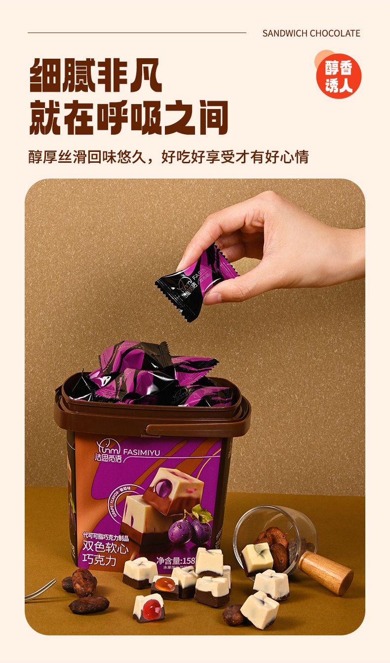 商品名称:法思觅语 双色软心巧克力158g 解馋零食