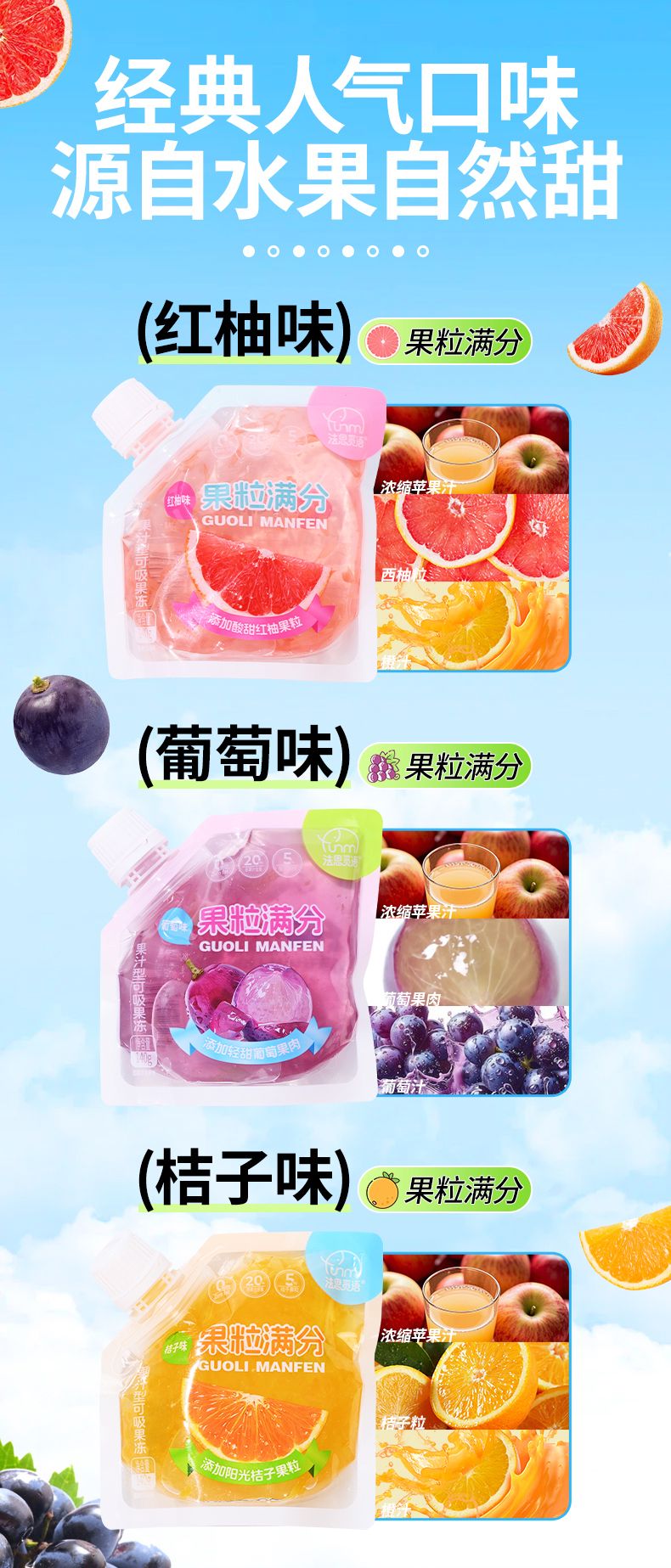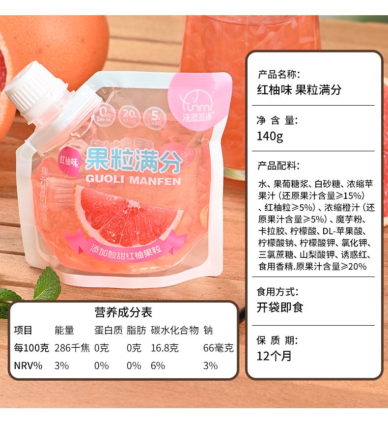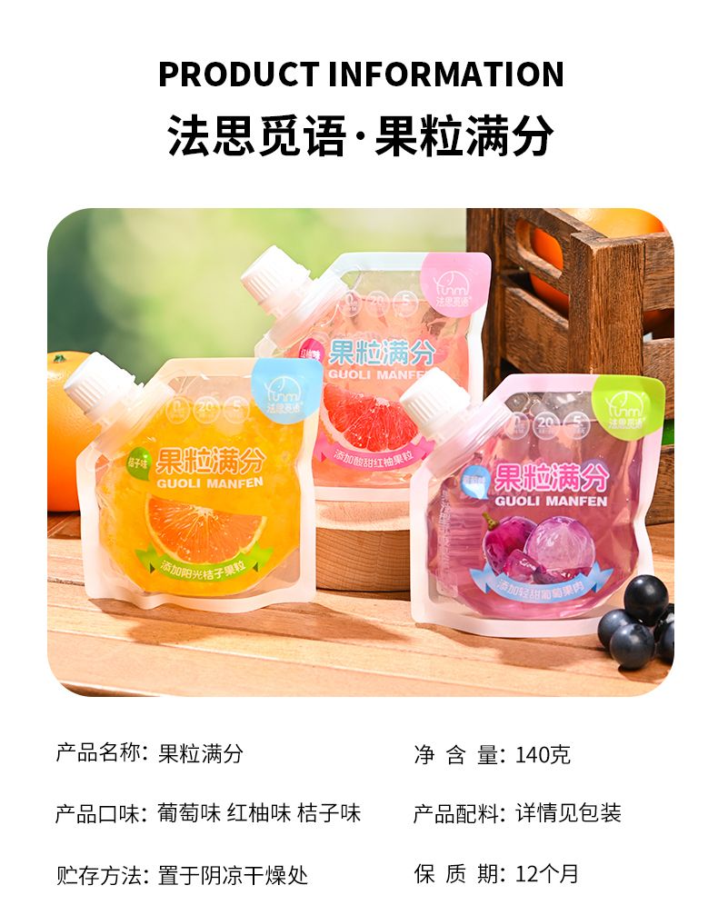 商品名称:法思觅语 果粒满分140g解馋零食果冻