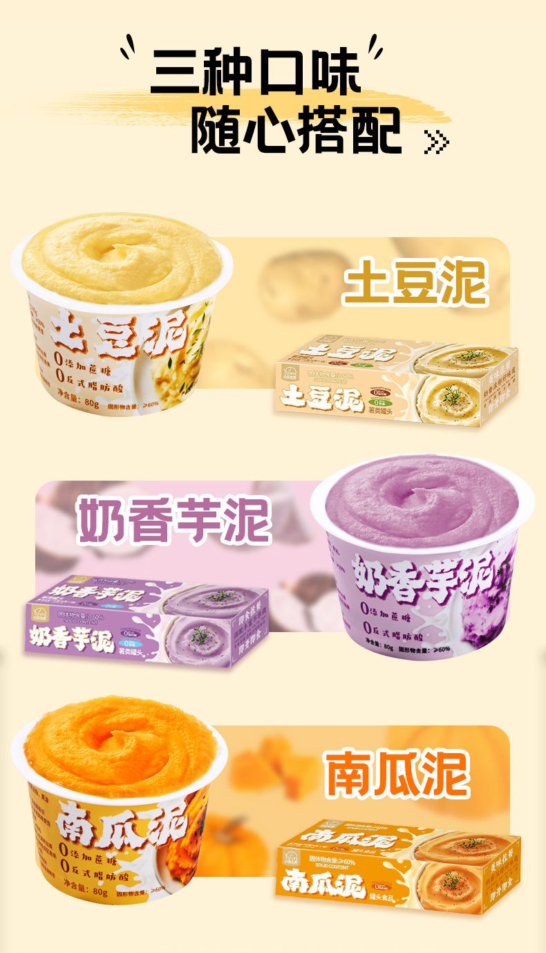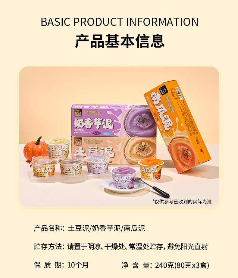 商品名称:法思觅语 薯类罐头 土豆泥/南瓜泥/奶香芋泥 240克(80克x3盒)