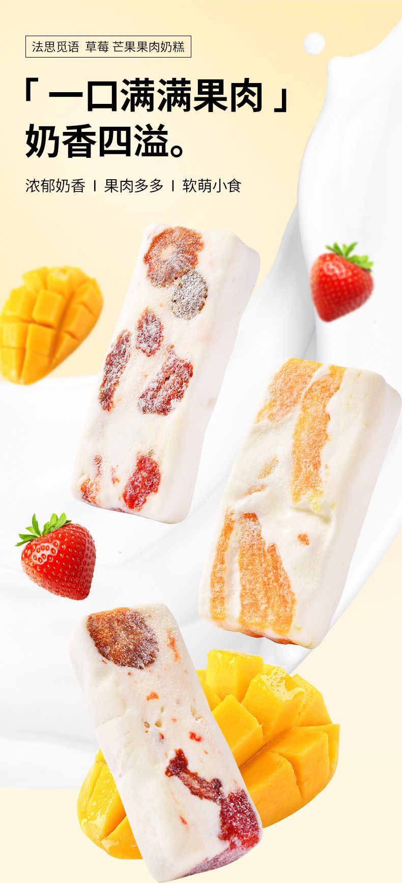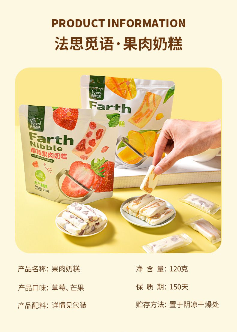 商品名称:法思觅语 芒果/草莓果肉奶糕120g