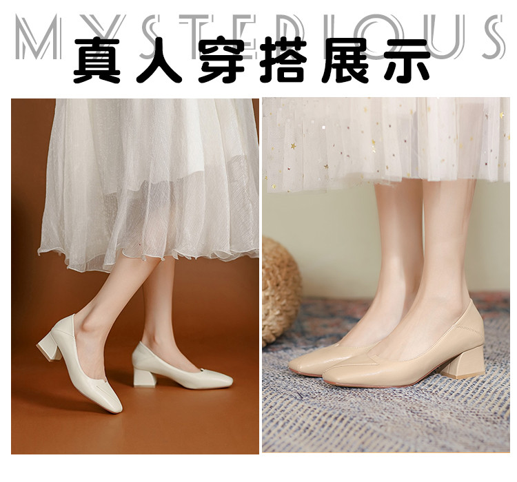 春季爆款百搭单鞋女中跟单鞋女职场简约通勤鞋妈妈鞋上班族 422810