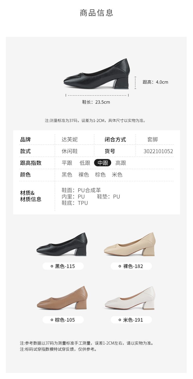 商品名称:春季爆款百搭单鞋女中跟单鞋女职场简约通勤鞋妈妈鞋上班族 422810