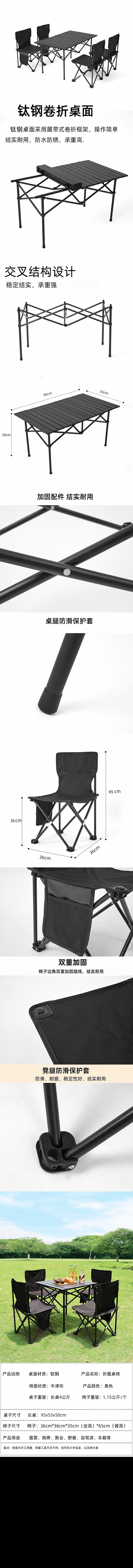 飞图乐 折叠桌椅长桌五件套-钛钢黑ZDZY0300