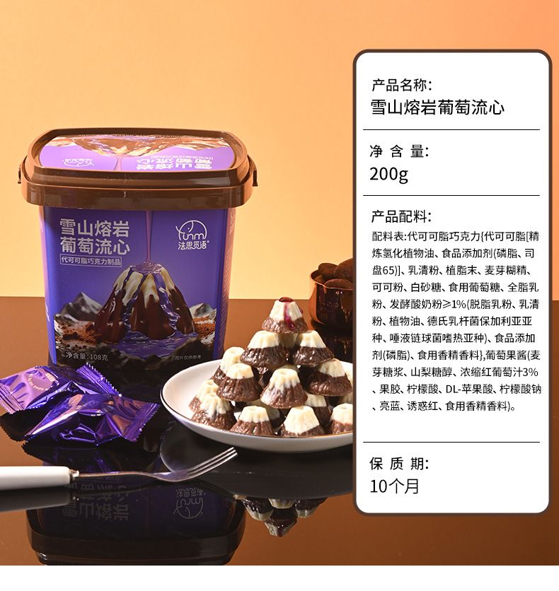 商品名称:法思觅语 雪山熔岩流心夹心巧克力108g