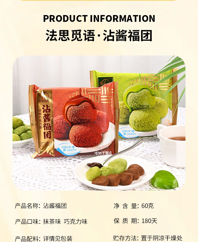 商品名称:法思觅语 沾酱福团60g 巧克力酱/抹茶酱