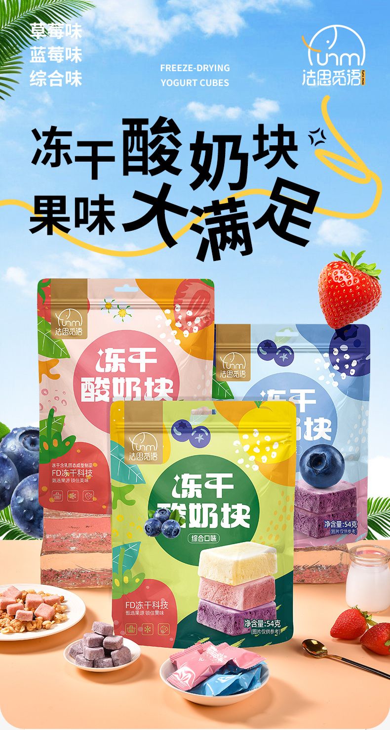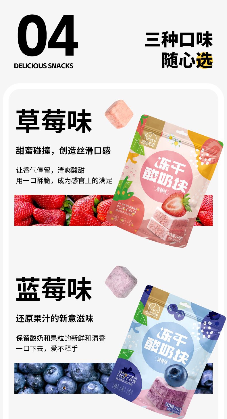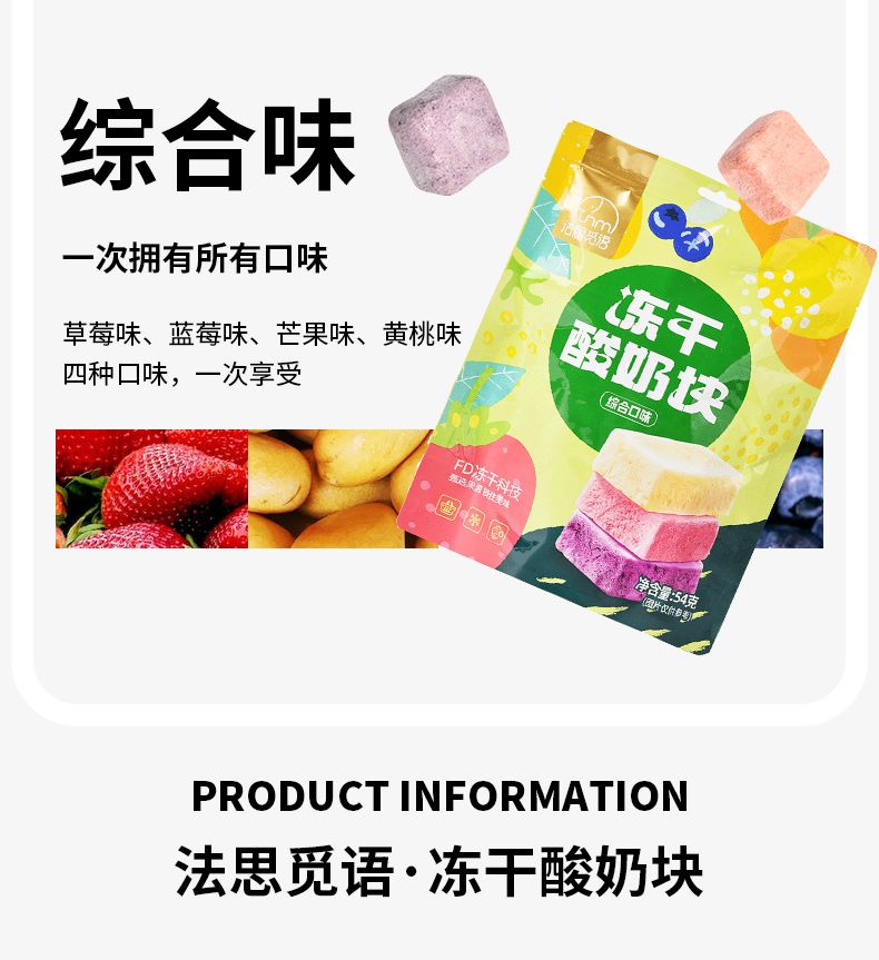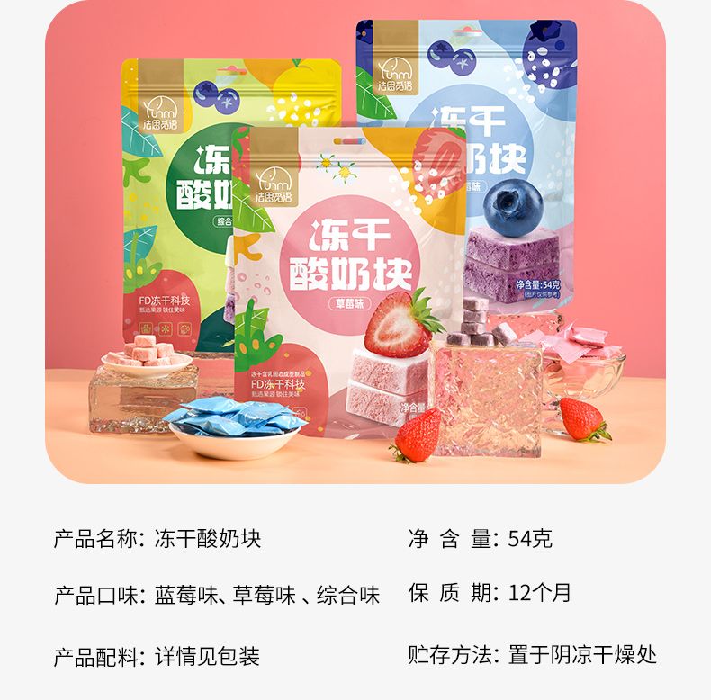 商品名称:法思觅语 冻干酸奶块54g 草莓味/蓝莓味 解馋零食糖果