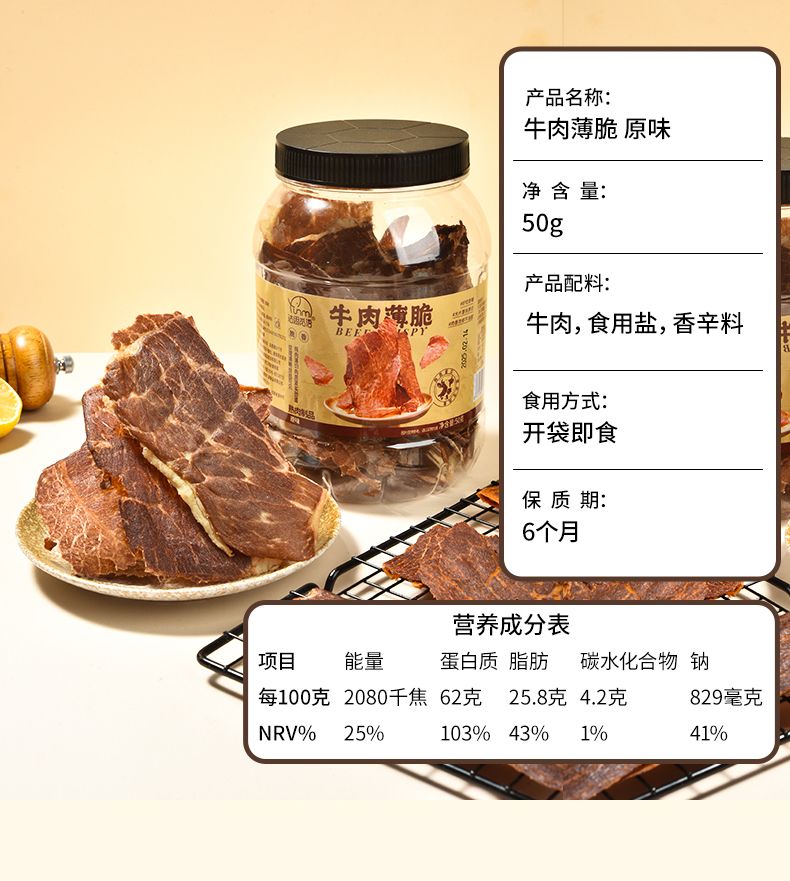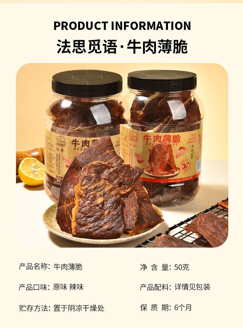 商品名称:法思觅语 牛肉薄脆50g 原味/香辣味 解馋零食