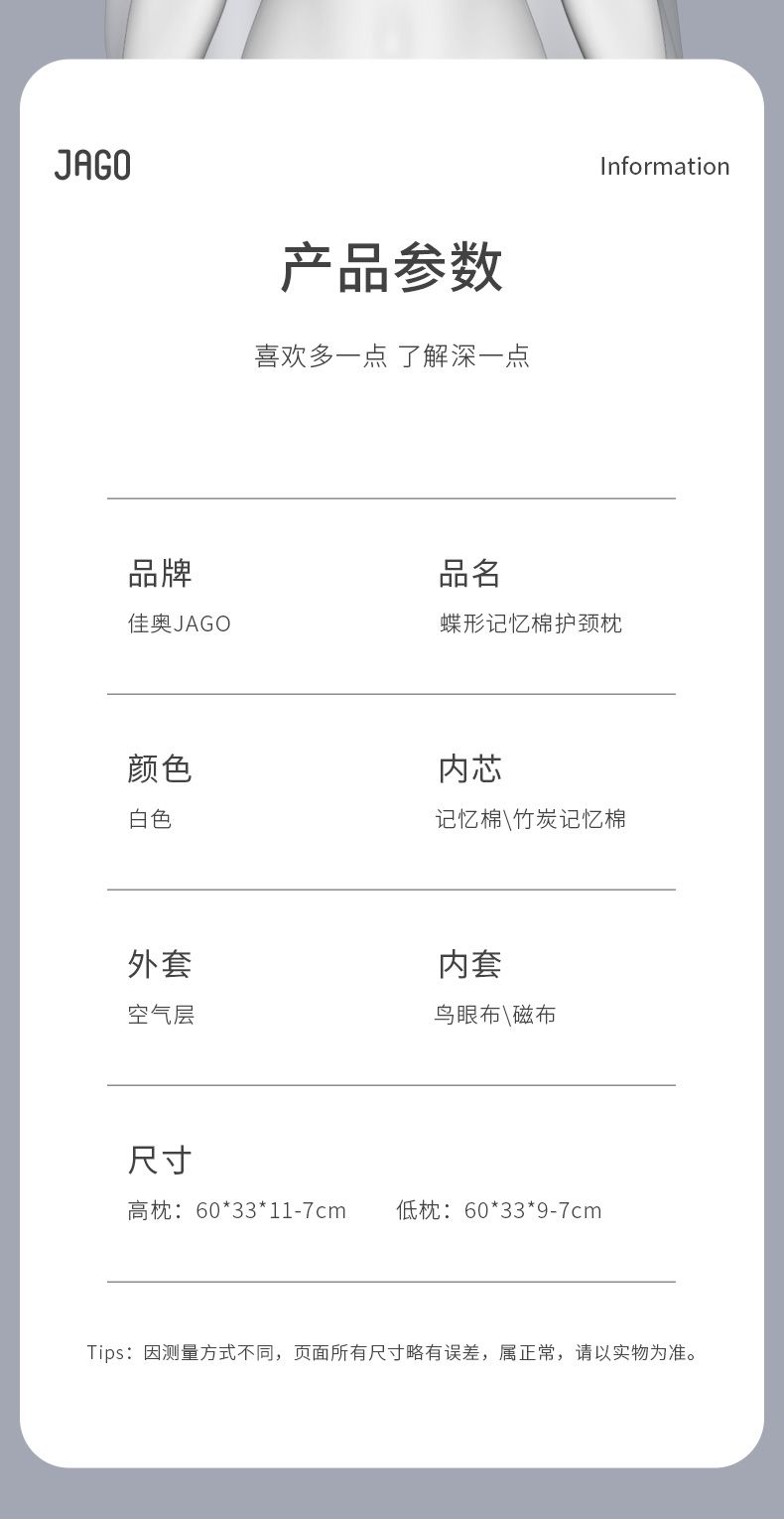 商品名称:佳奥 蝶形记忆枕竹炭磁布款白色 J02A07CW2