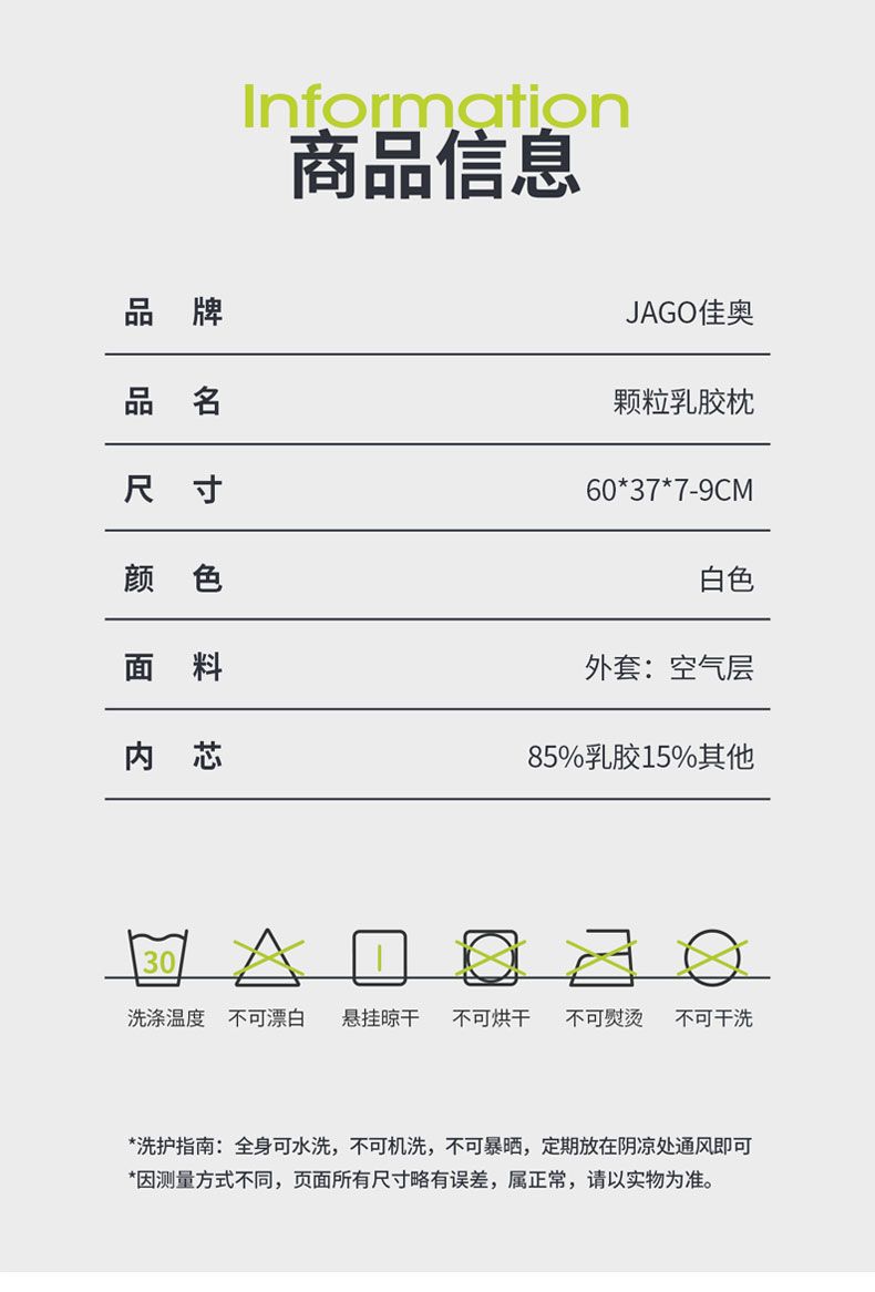 商品名称:佳奥 乳胶颗粒枕白色 210104J0200MW2