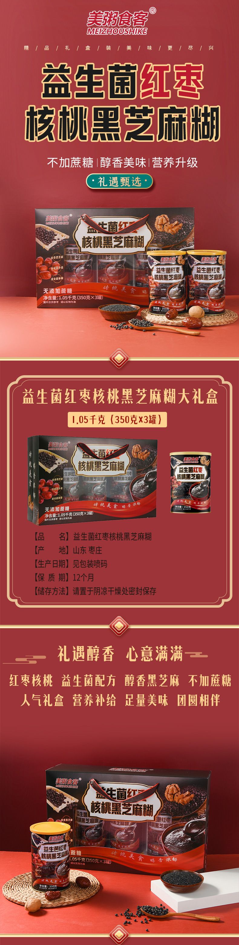 商品名称:美粥食客 益生菌红枣核桃黑芝麻糊礼盒1.05kg 送礼送长辈见面礼物年货