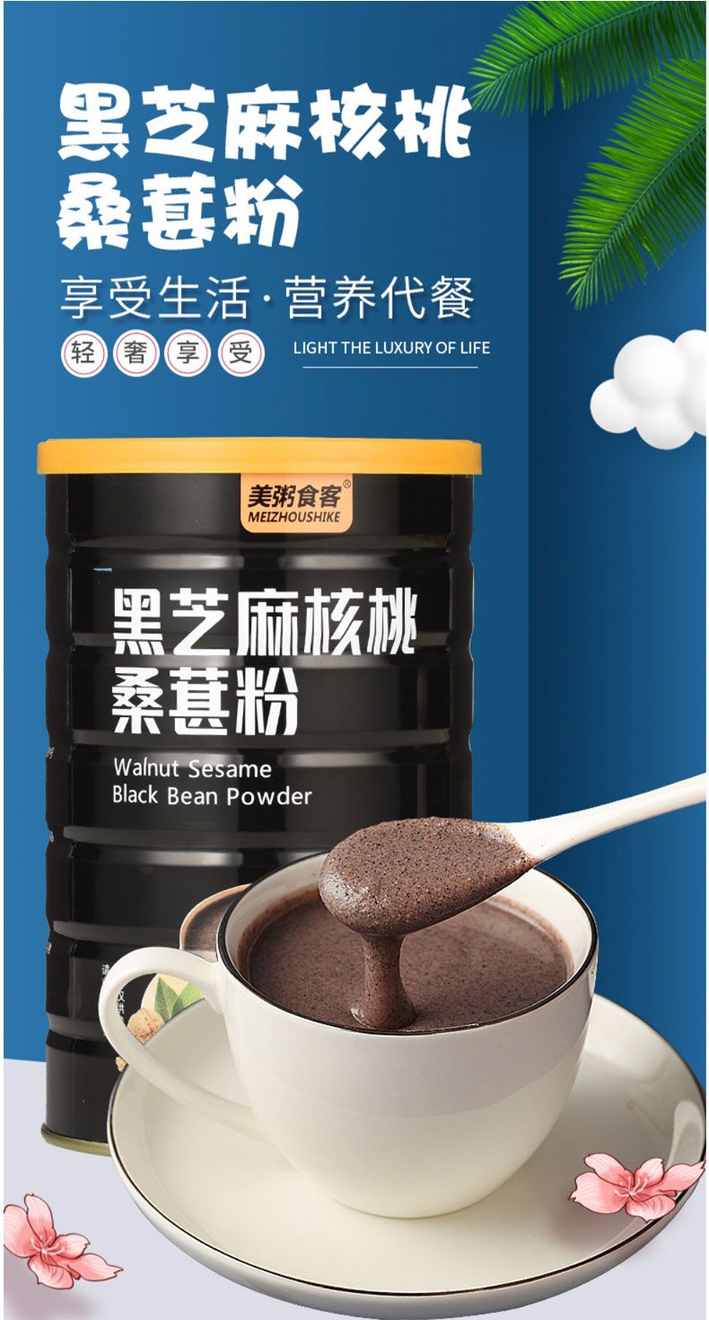 商品名称:美粥食客 黑芝麻核桃桑葚粉500g无蔗糖