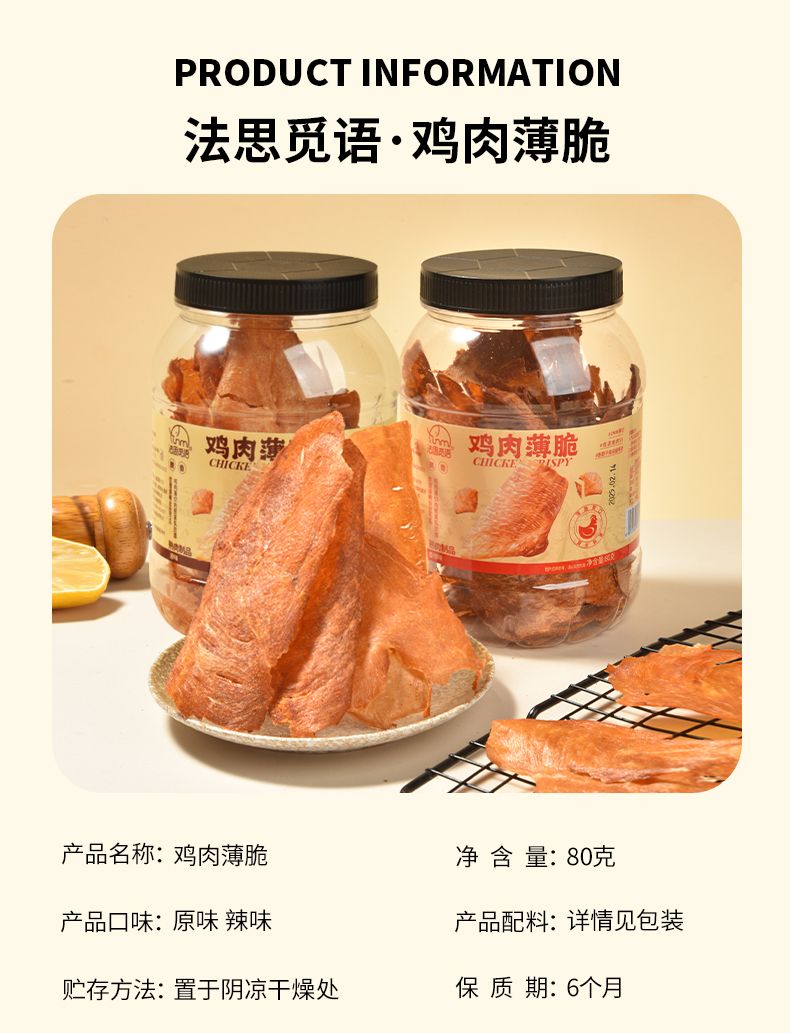 商品名称:法思觅语 鸡肉薄脆80g 原味/香辣味 解馋零食