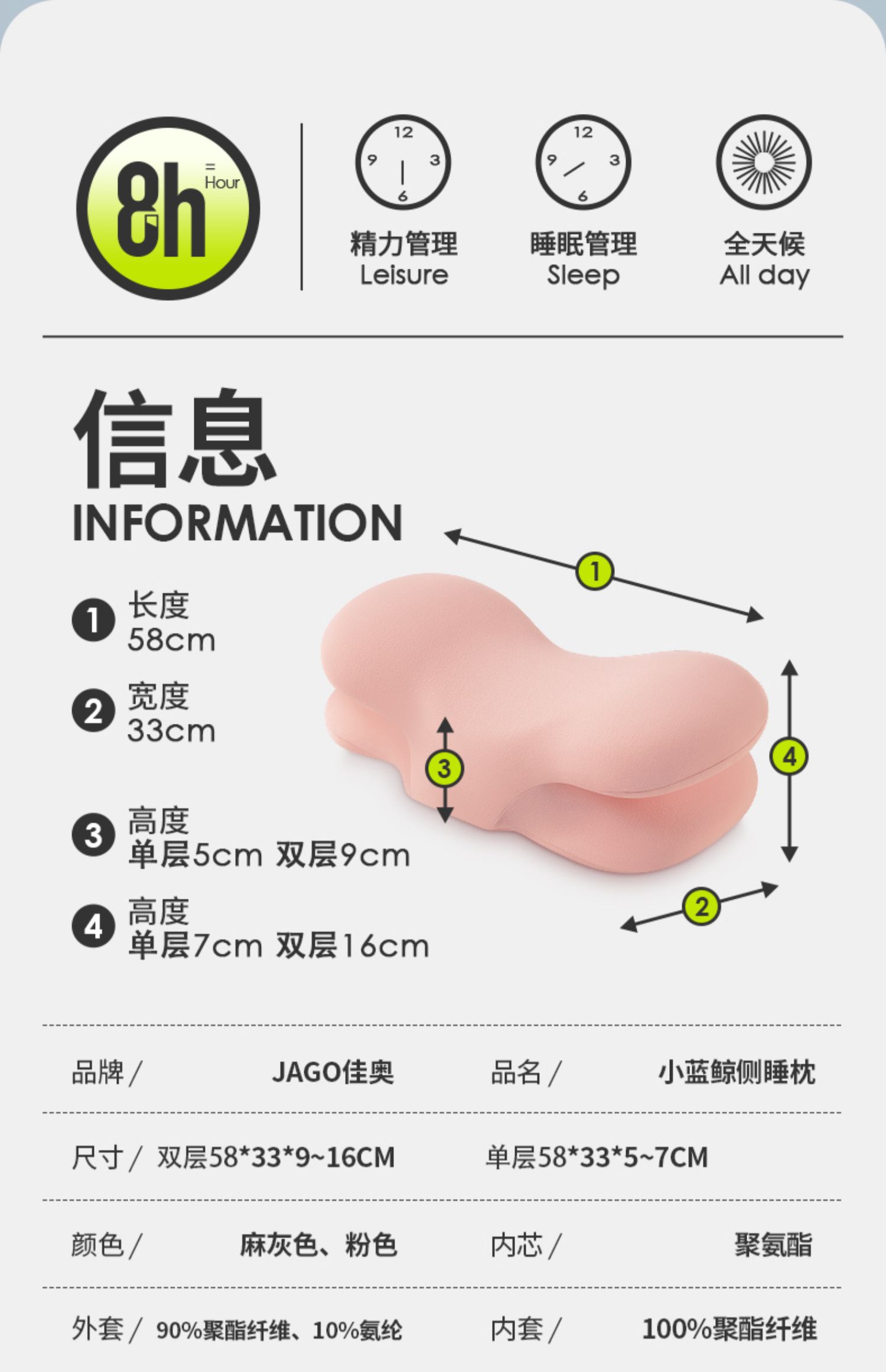 商品名称:佳奥 小蓝鲸记忆枕麻灰色 230101JK0100LB5