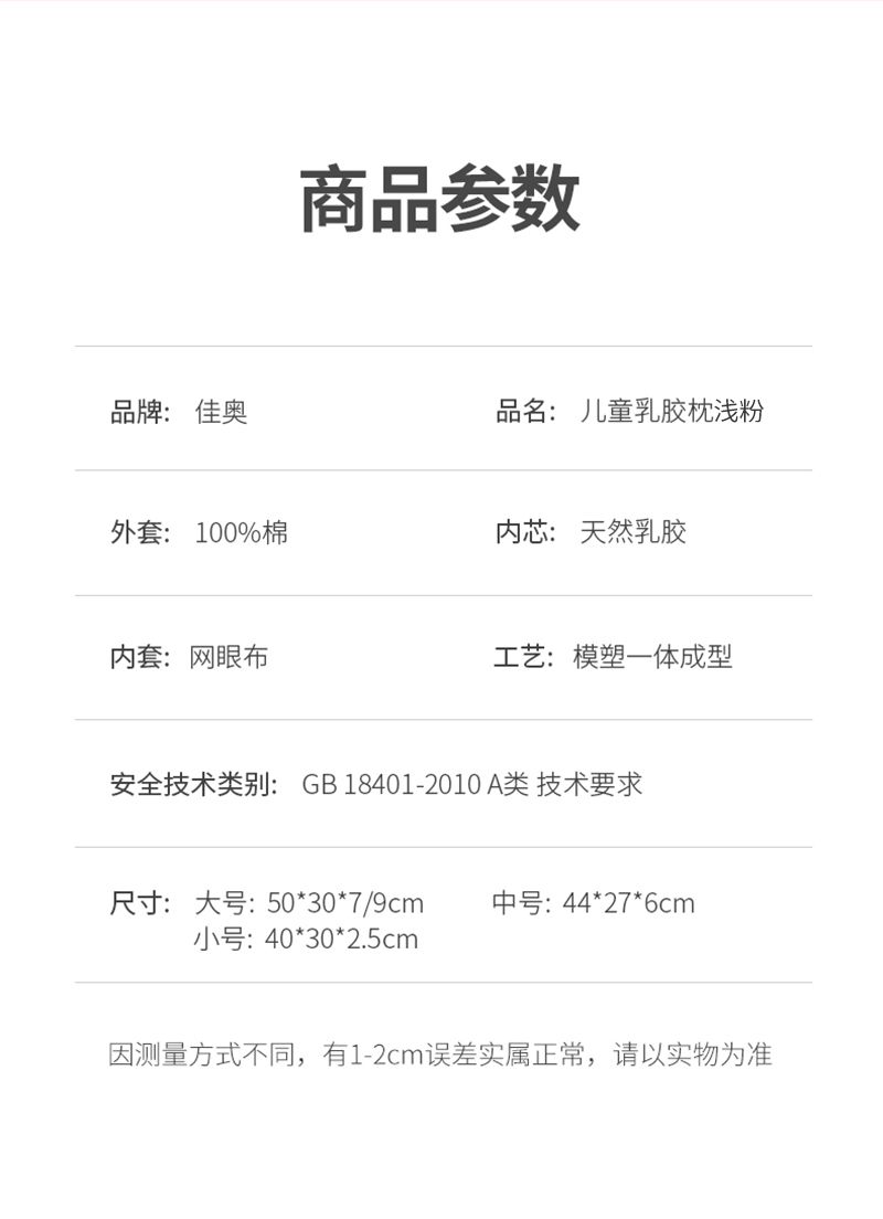 商品名称:佳奥 波浪形儿童乳胶枕3-6岁44*27*6CM
