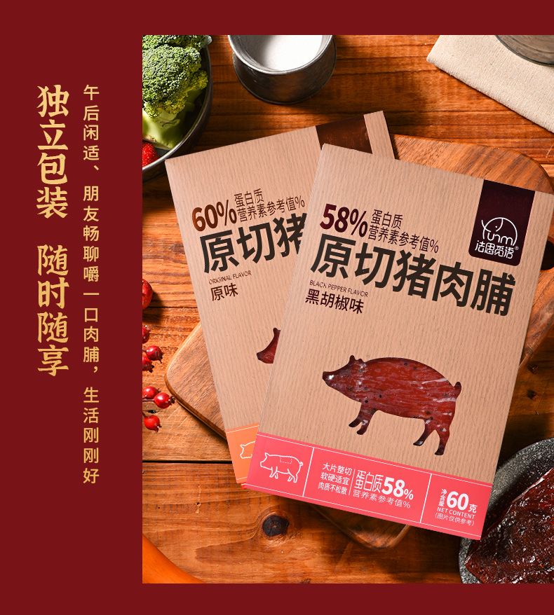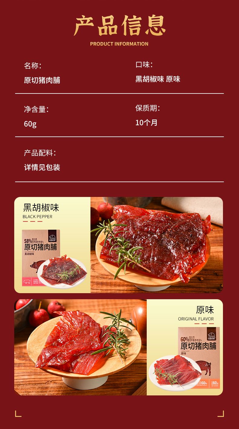 商品名称:法思觅语 原切猪肉脯60g 原味/黑胡椒味