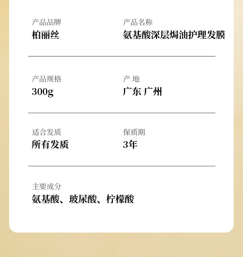商品名称:柏丽丝 氨基酸深层焗油护理发膜300ml