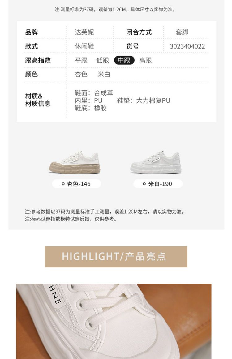 商品名称:小白鞋女秋款舒适百搭学院风厚底板鞋女时尚休闲鞋运动女鞋子 035034