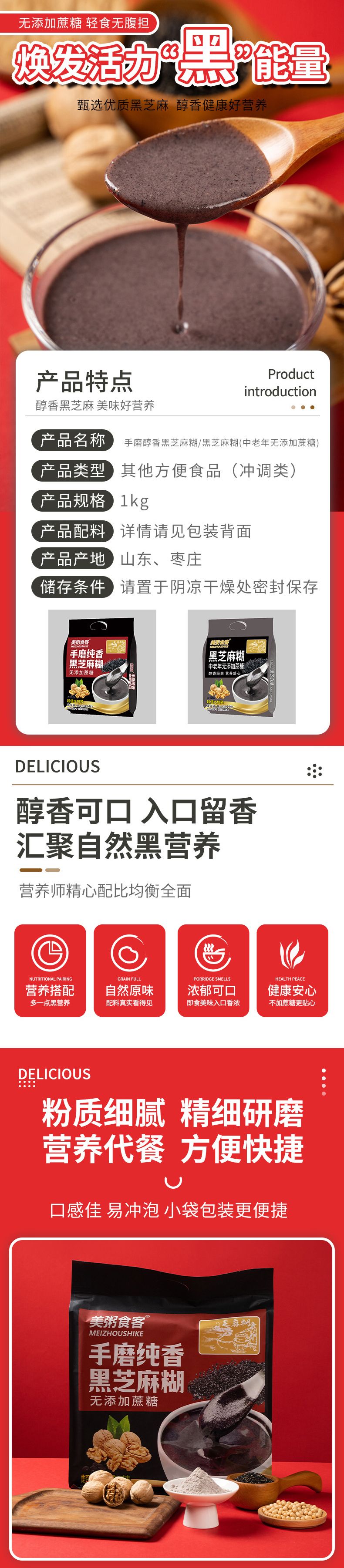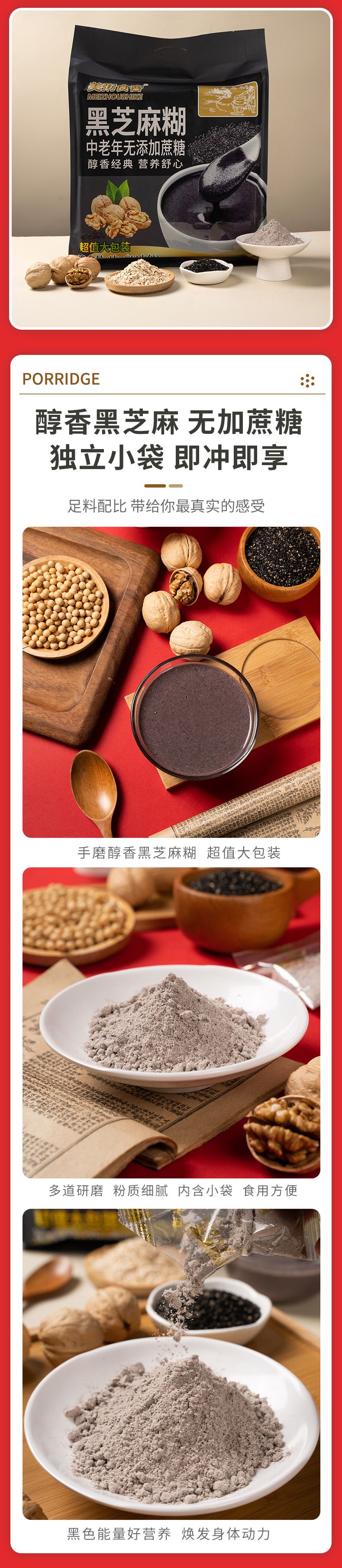 商品名称:美粥食客 黑芝麻糊1kg 内含独立33小包 中老年无添加蔗糖