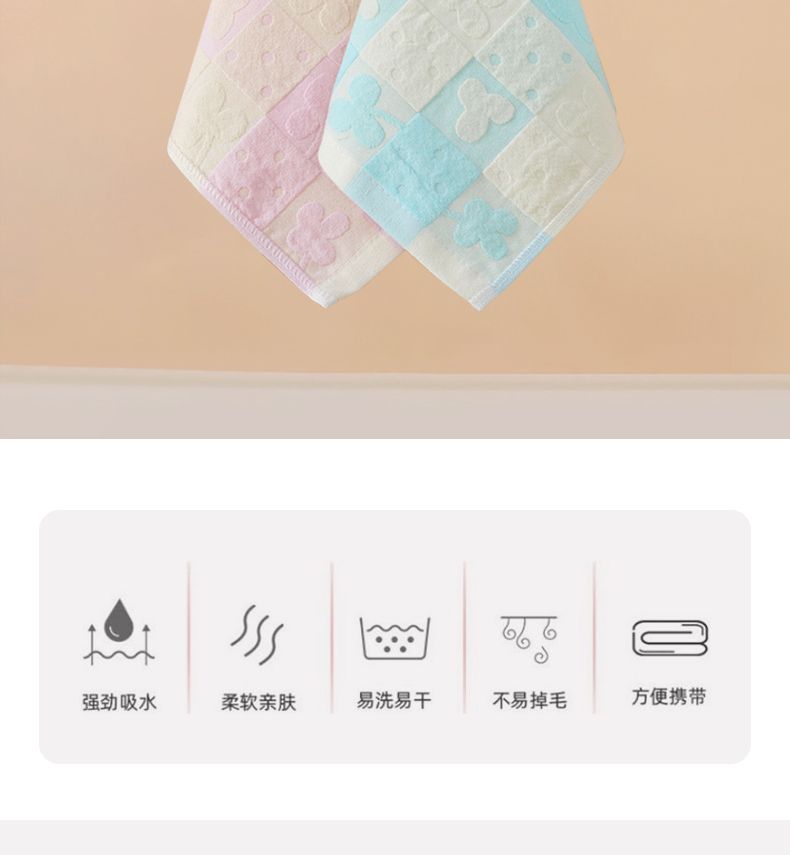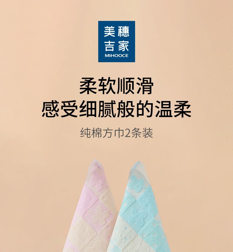 商品名称:美穗吉家(mihooce)纯棉毛巾抑菌擦手巾方巾吸水吸汗不掉毛巾 2条装
