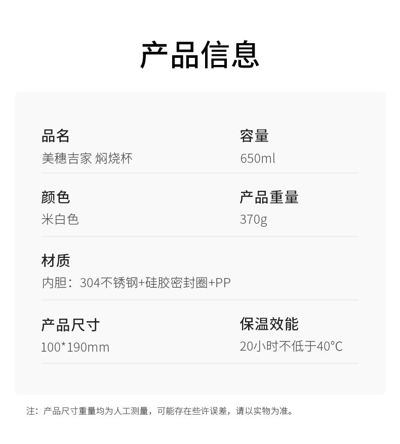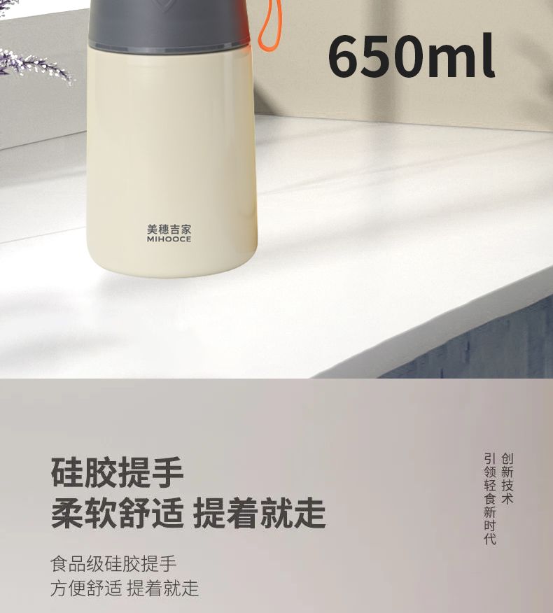 商品名称:美穗吉家(mihooce)便携焖烧杯 不锈钢焖粥带饭带勺随行焖烧罐 米白色 650ml