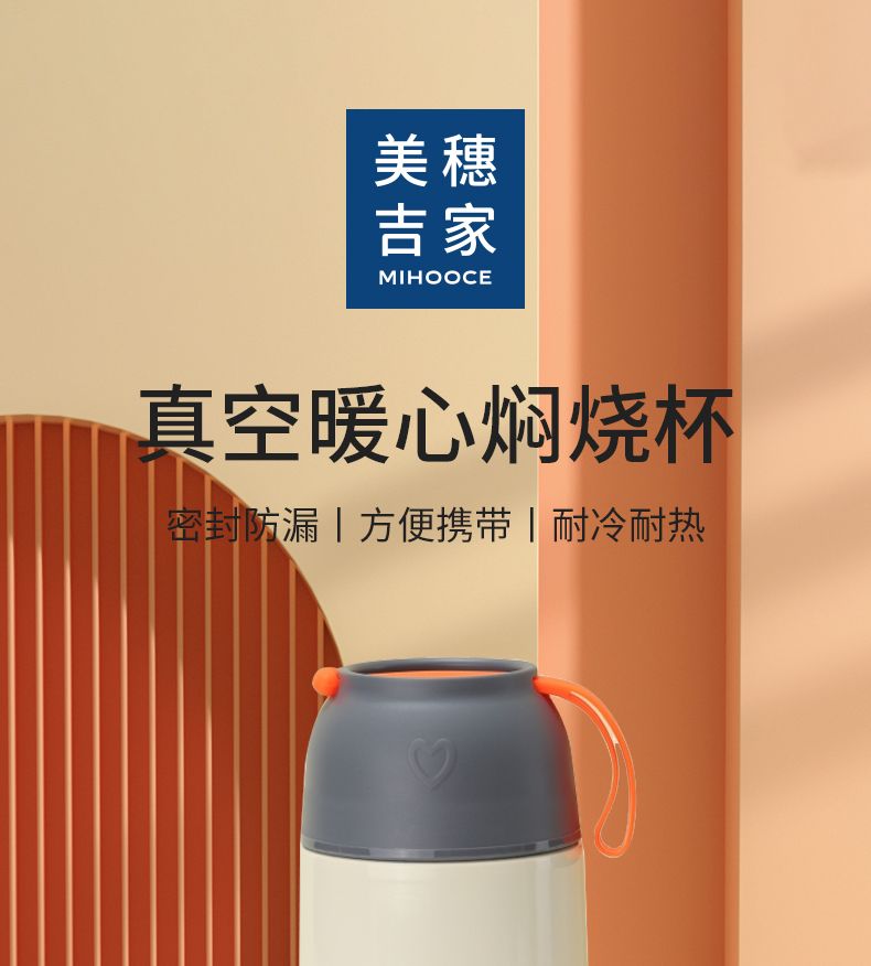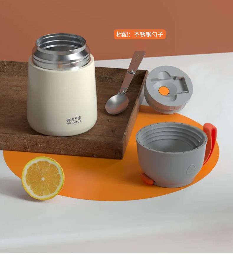 美穗吉家(mihooce)便携焖烧杯 不锈钢焖粥带饭带勺随行焖烧罐 米白色 650ml