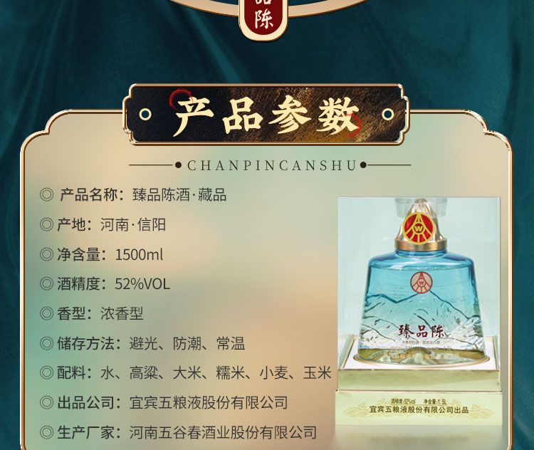 商品名称:五粮液股份出品 白酒 纯粮酒 礼盒装 52度 1500mL 臻品陈 送礼 52度 1500mL
