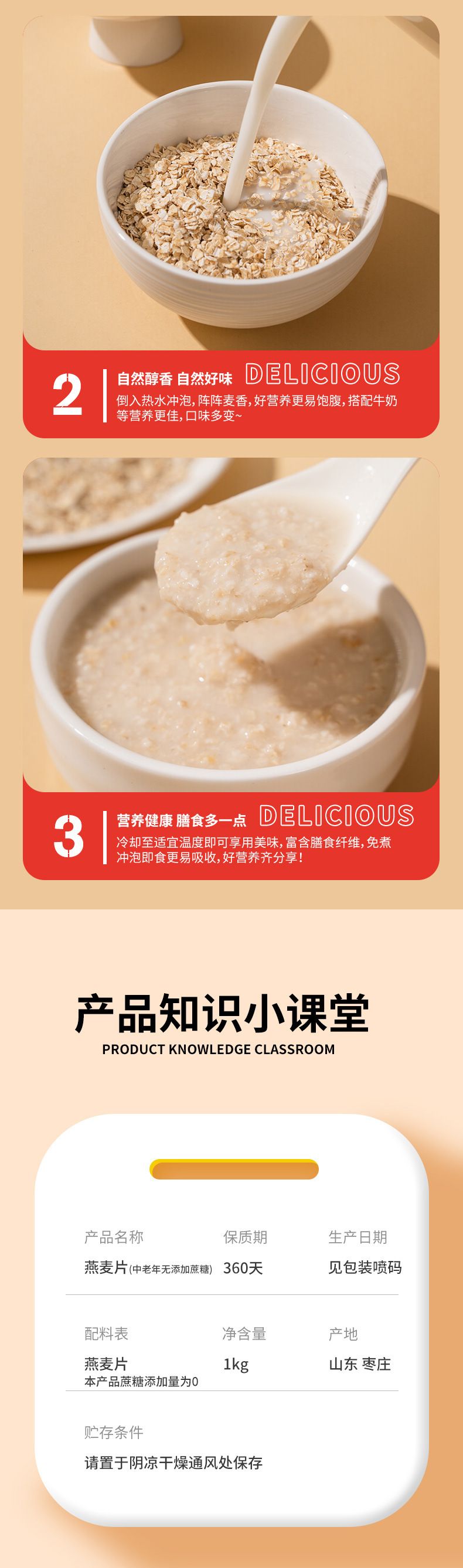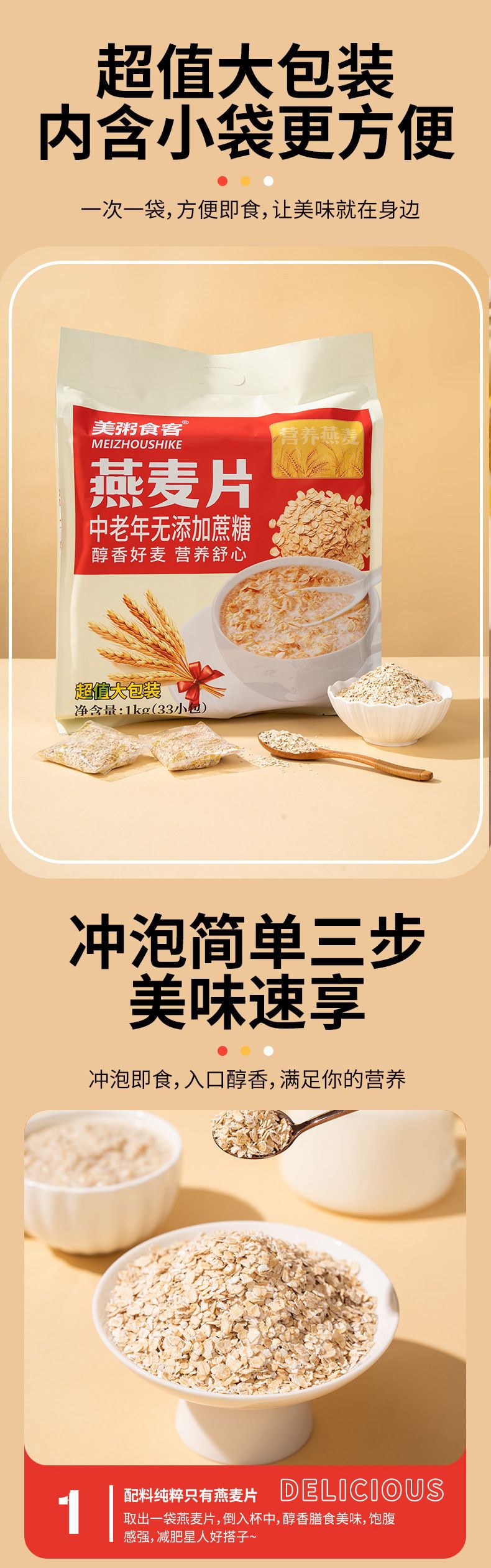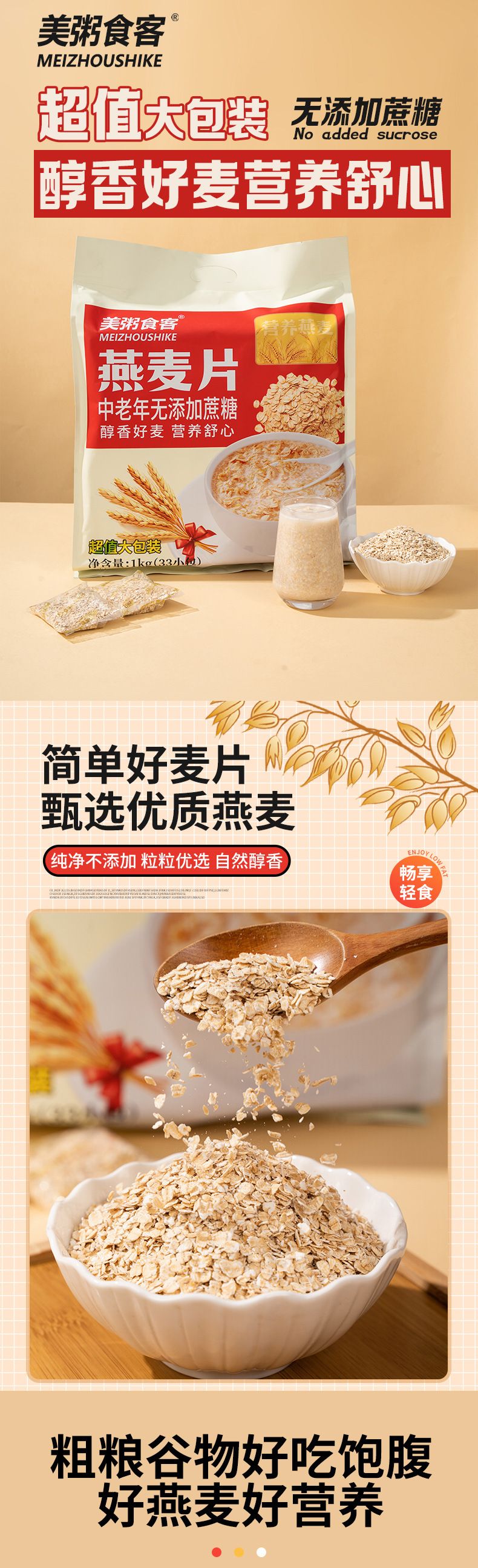商品名称:美粥食客 燕麦片(中老年无添加蔗糖)1kg 内含独立33小包