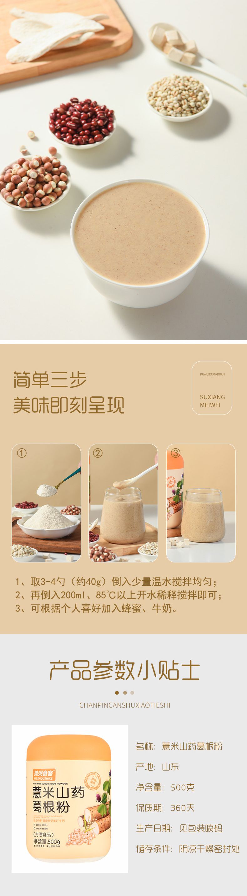 商品名称:美粥食客 薏米山药葛根粉500g