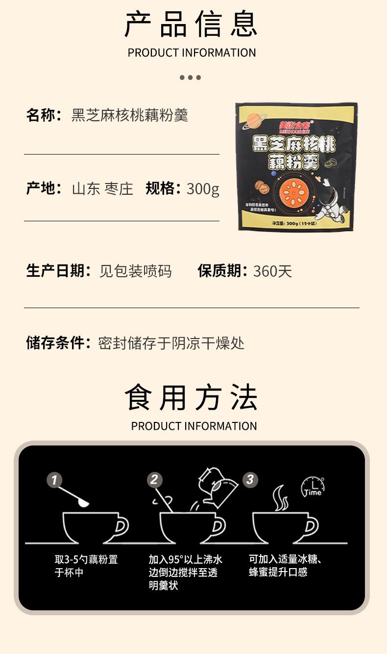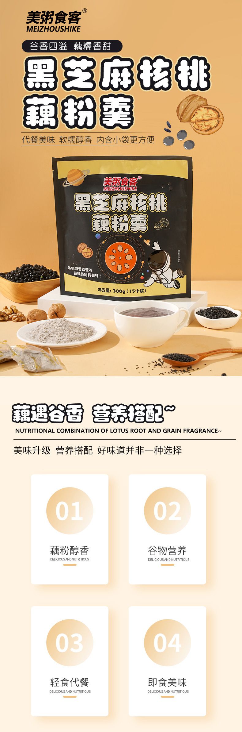 商品名称:美粥食客 黑芝麻核桃藕粉羹300g 内含独立15小袋 营养早餐下午茶冲饮冲调