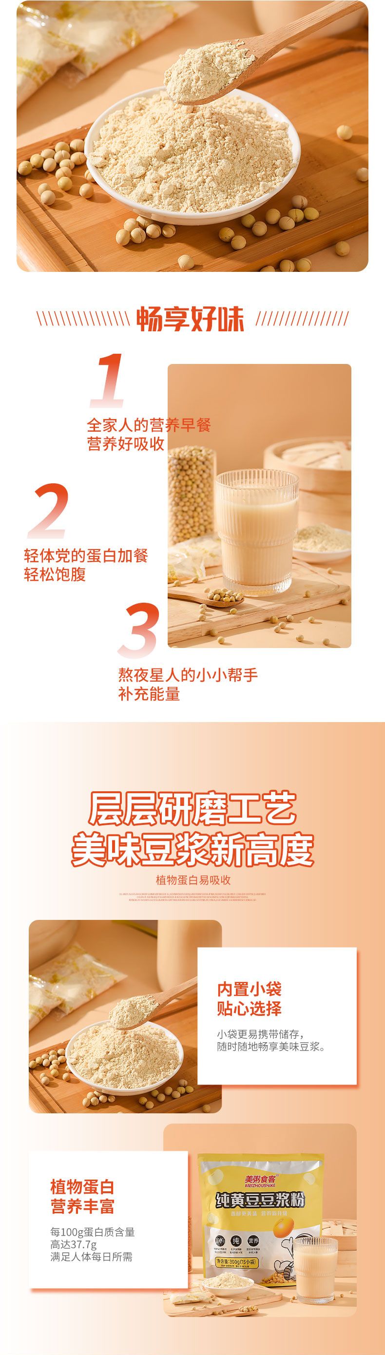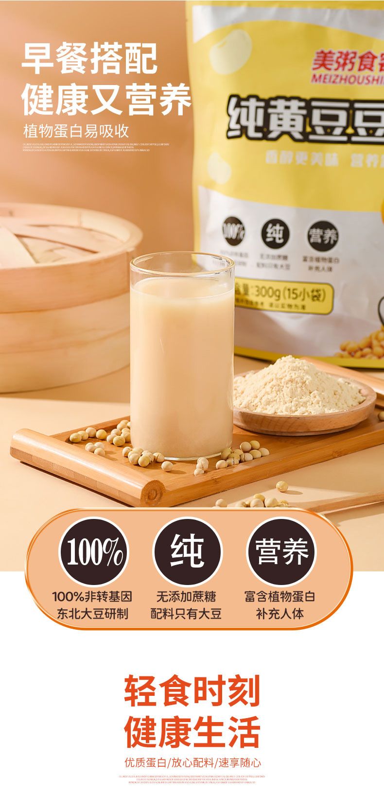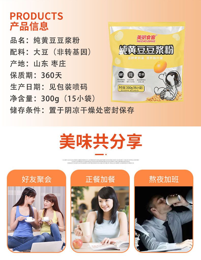 商品名称:美粥食客 纯黄豆豆浆粉300g营养早餐 内含独立15小袋
