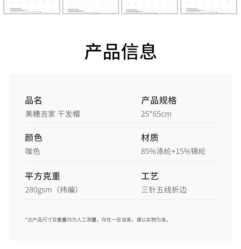商品名称:美穗吉家(mihooce)干发帽 柔软强吸水加厚浴帽包头巾速干擦头洗头毛巾一条装
