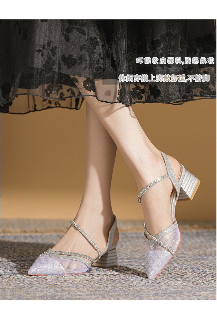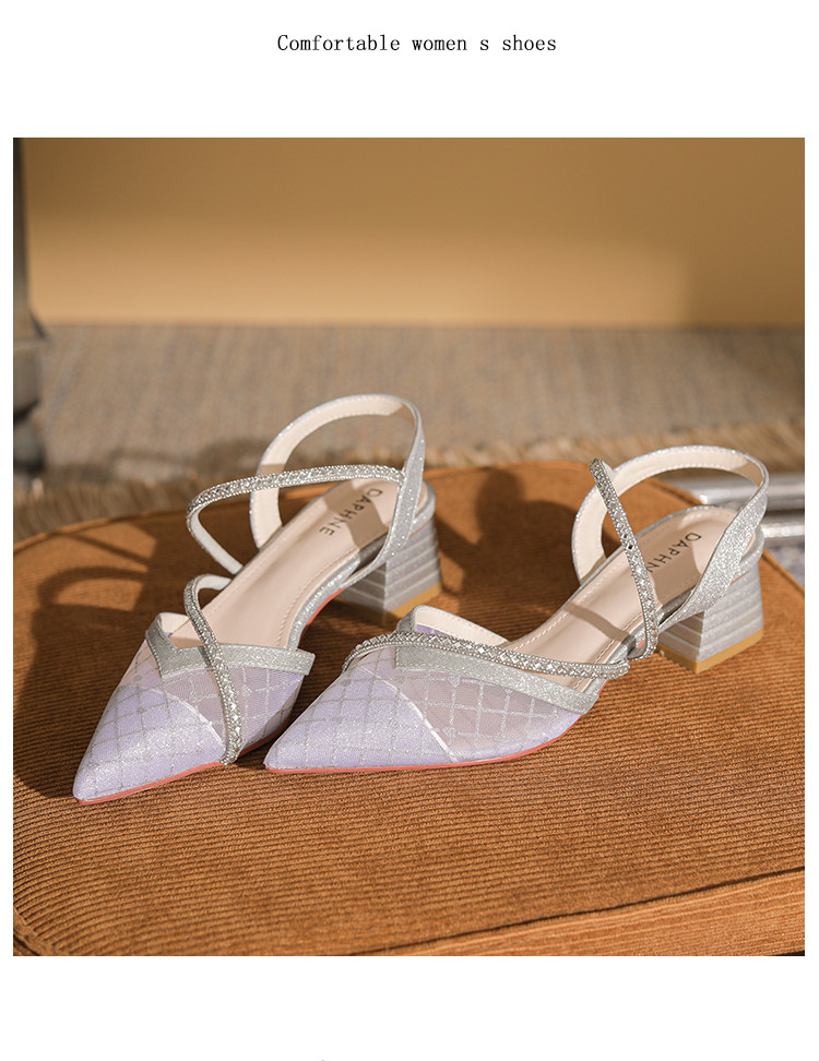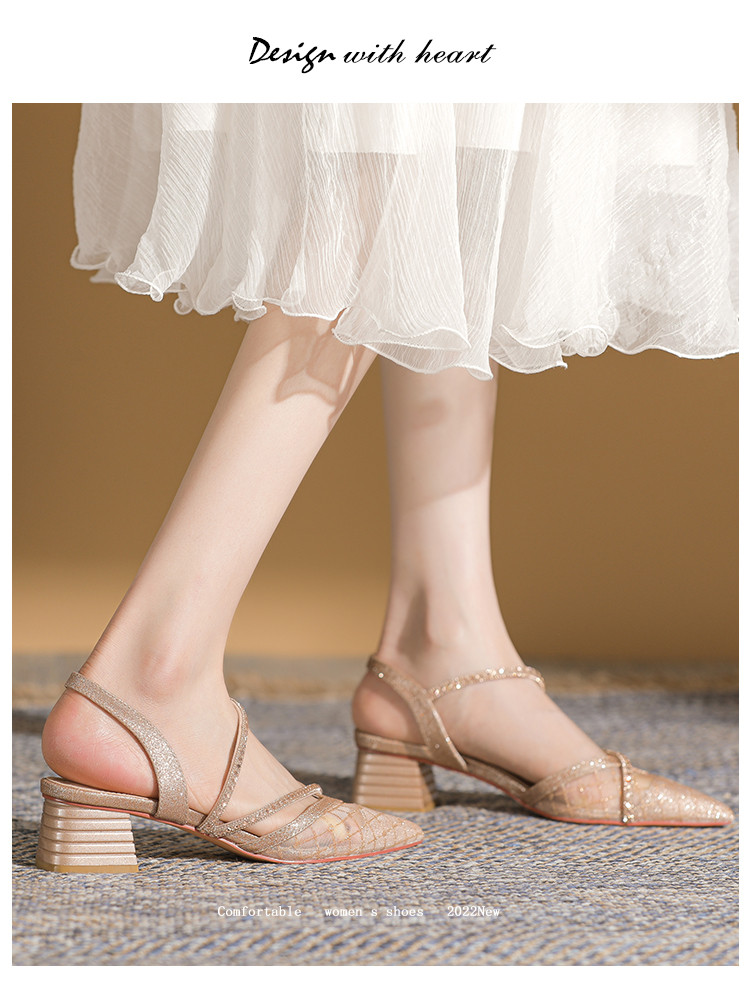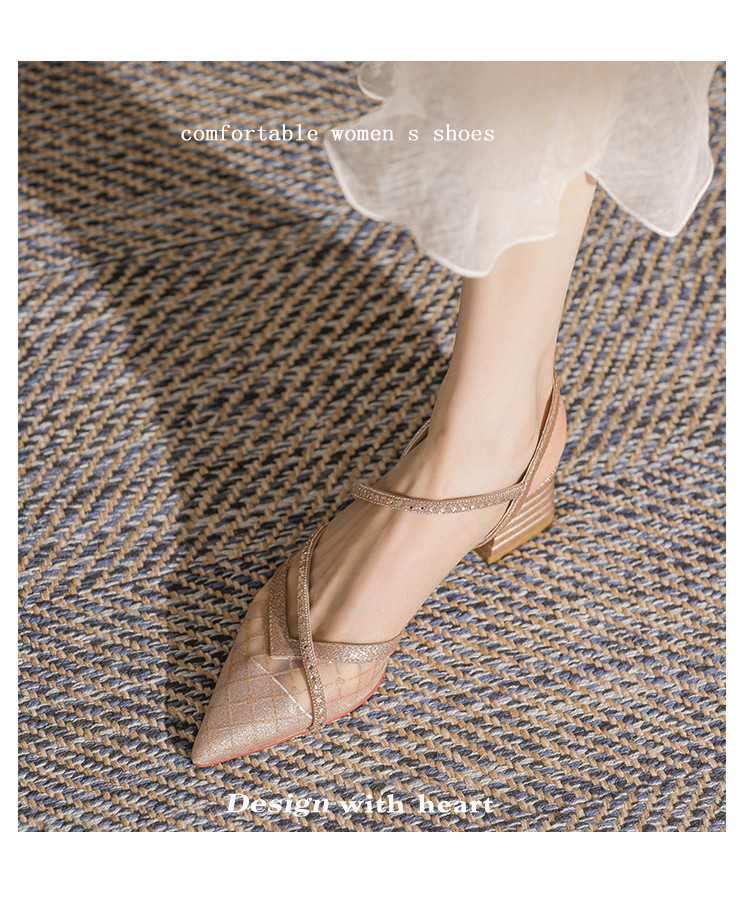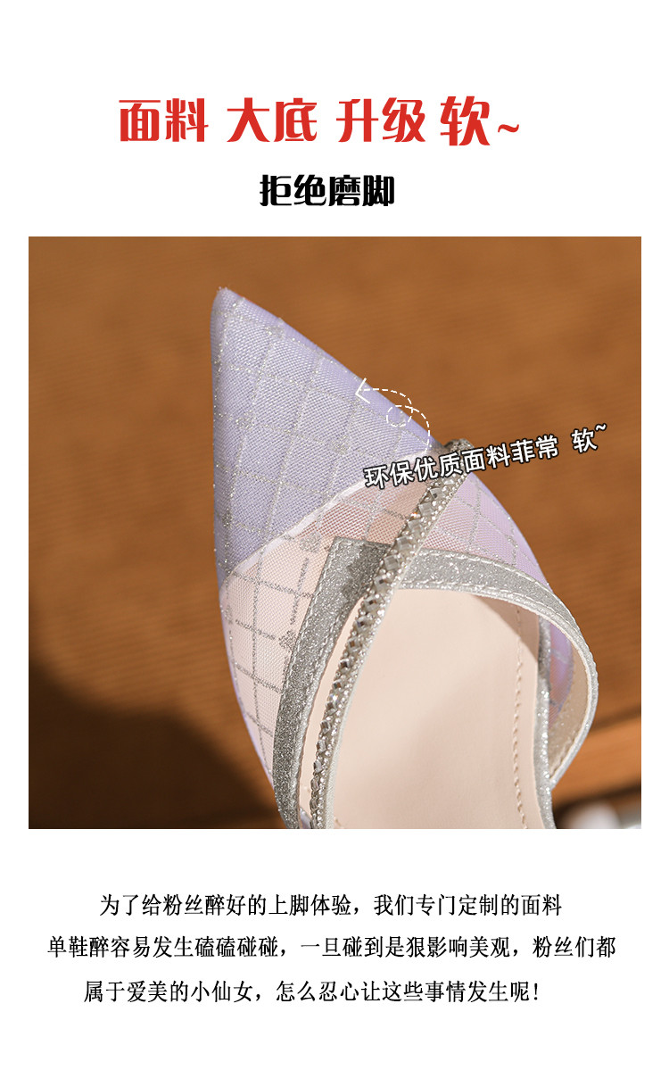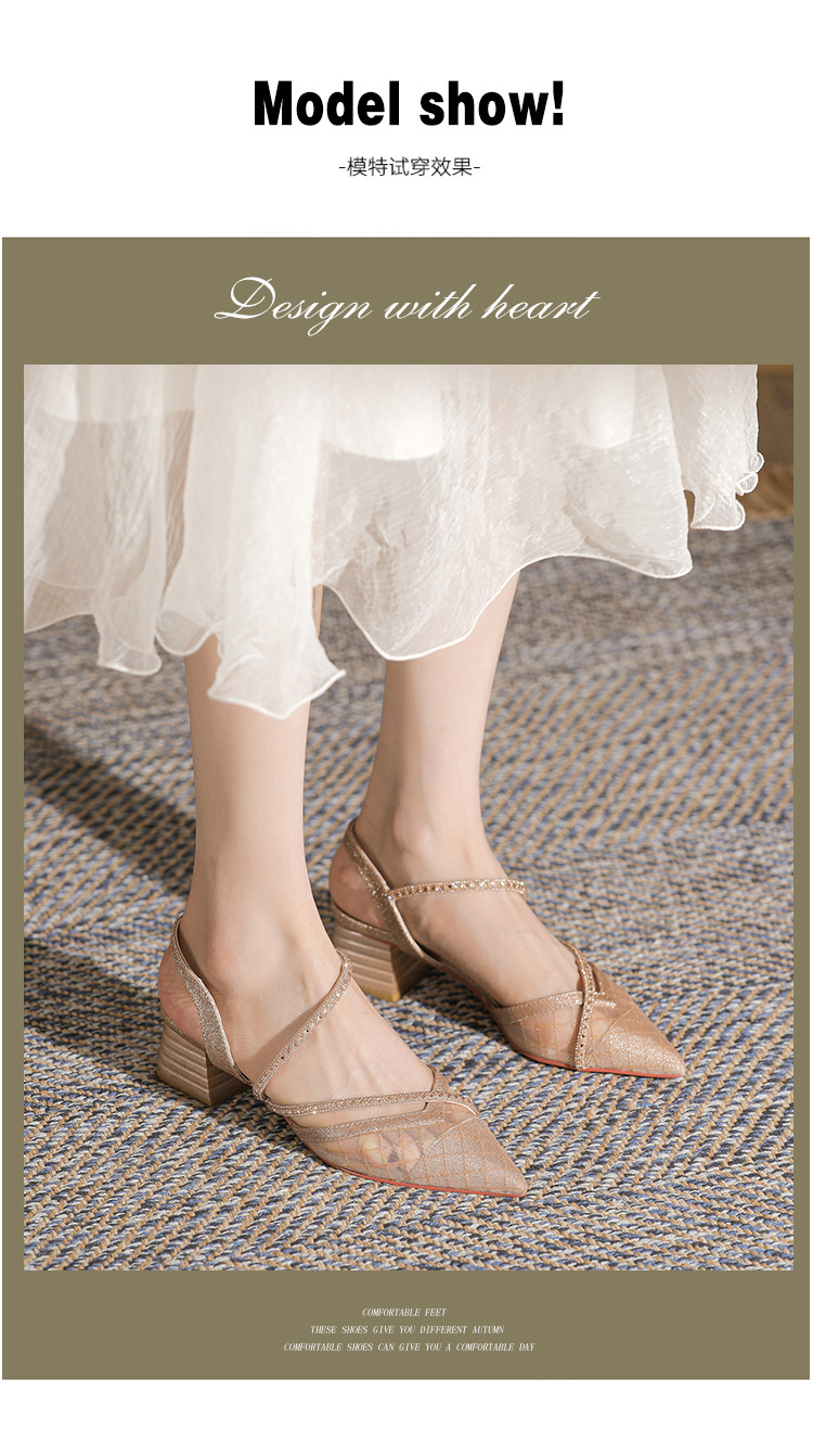 商品名称:夏季法式尖头单鞋女百搭中空凉鞋气质高跟鞋网纱时装鞋女通勤鞋 289751
