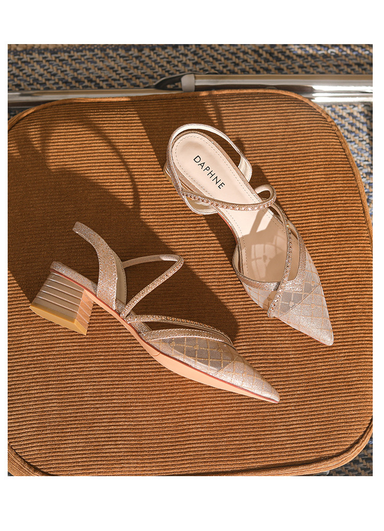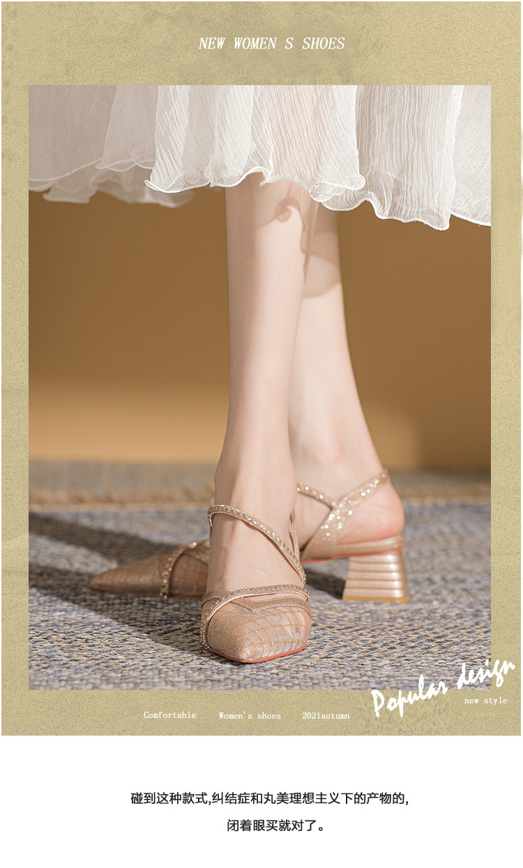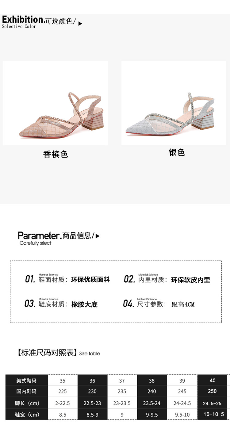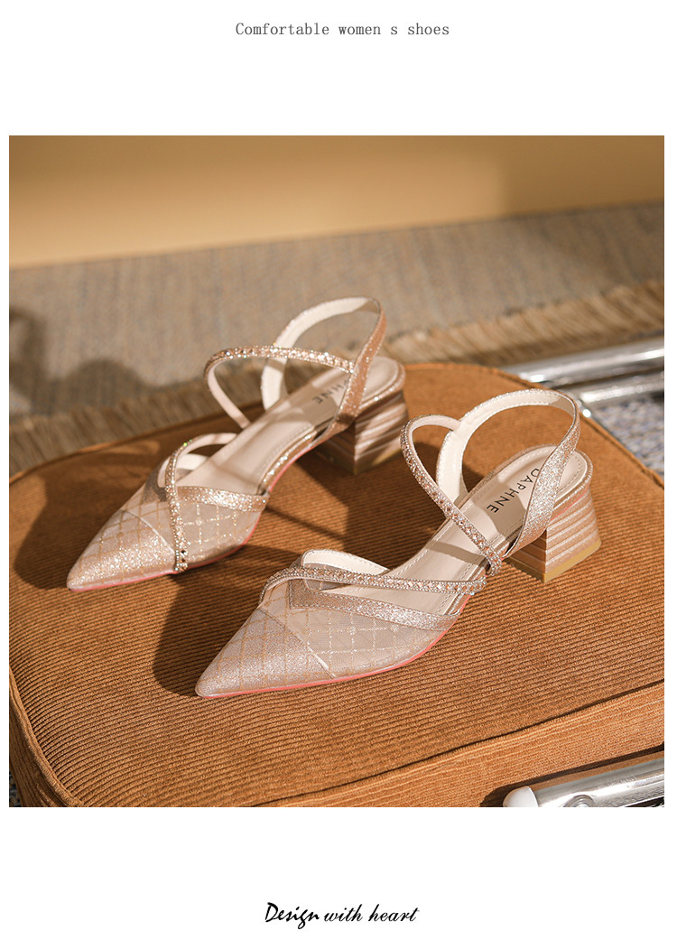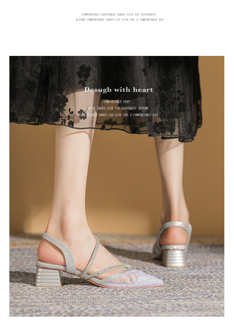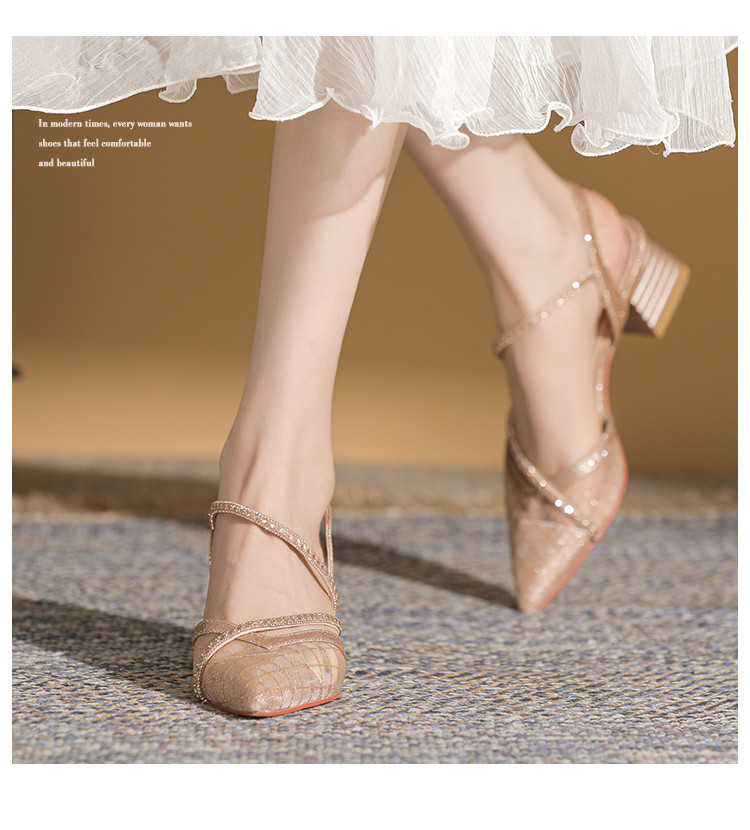 商品名称:夏季法式尖头单鞋女百搭中空凉鞋气质高跟鞋网纱时装鞋女通勤鞋 289751