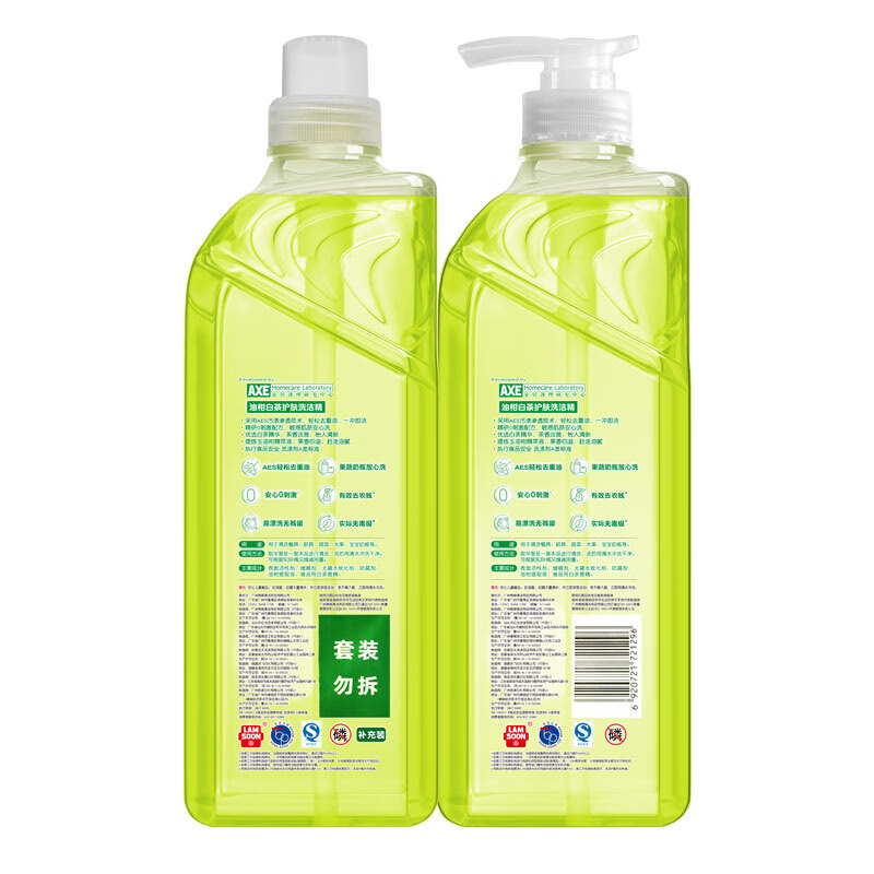 商品名称:【京东/顺丰配送】AXE/斧头牌油柑白茶护肤洗洁精套装-白茶清香1kg*2瓶
