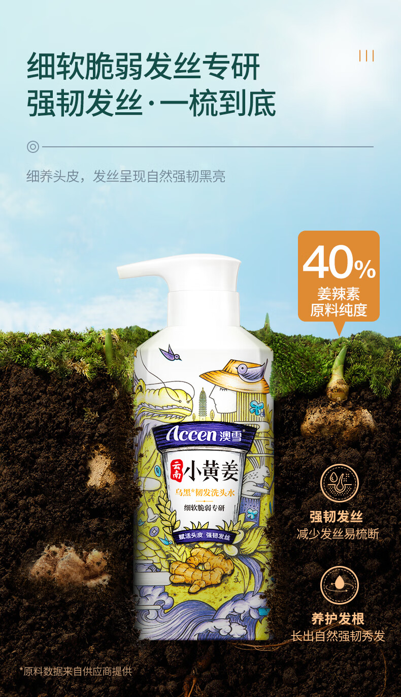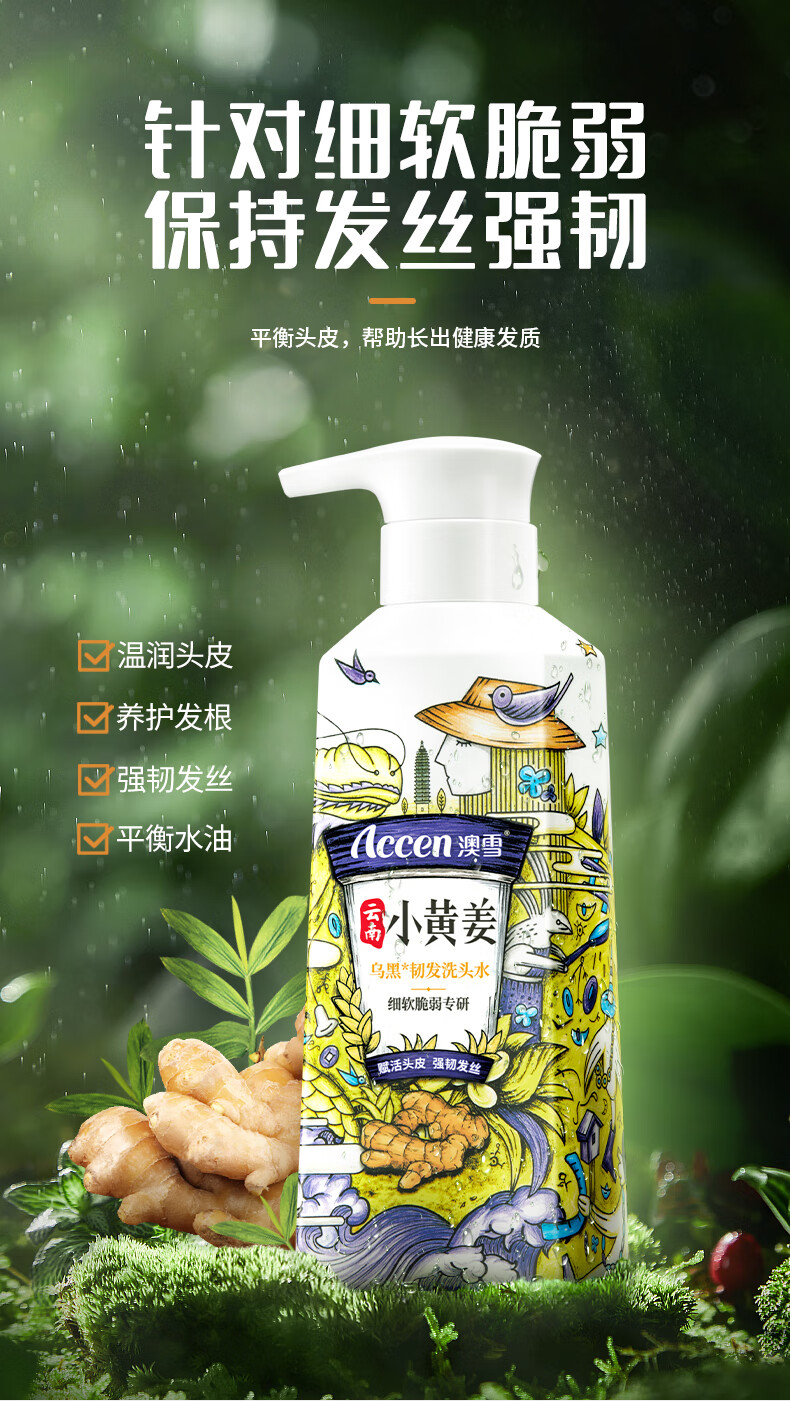 【京东/顺丰配送】澳雪云南小黄姜乌黑韧发洗发水500ml