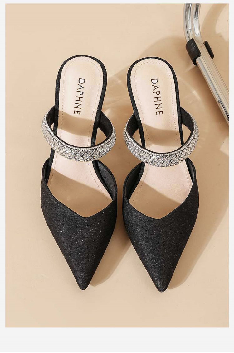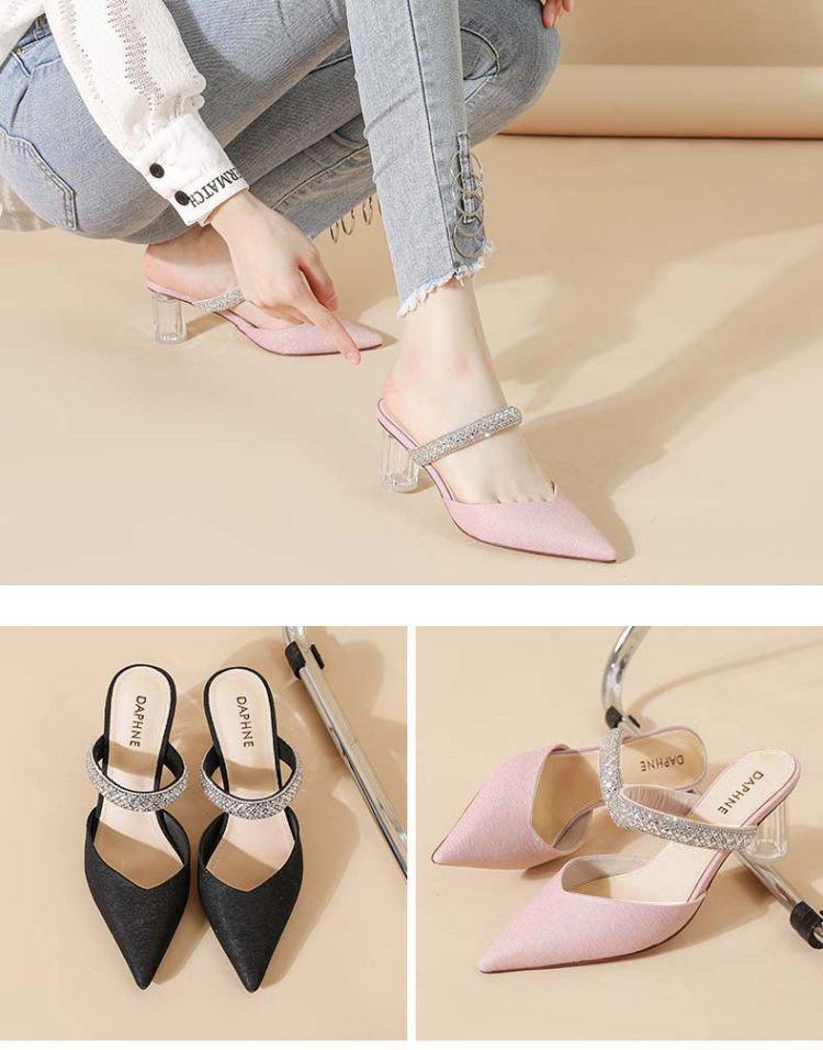 夏季时尚气质高跟鞋时装鞋包头后空凉鞋百搭通勤鞋一字带凉拖女鞋 175703