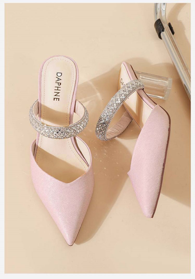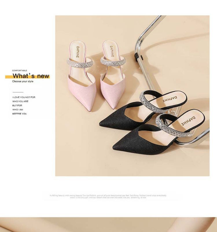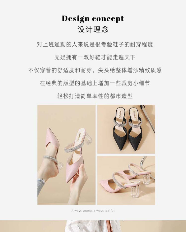商品名称:夏季时尚气质高跟鞋时装鞋包头后空凉鞋百搭通勤鞋一字带凉拖女鞋 175703